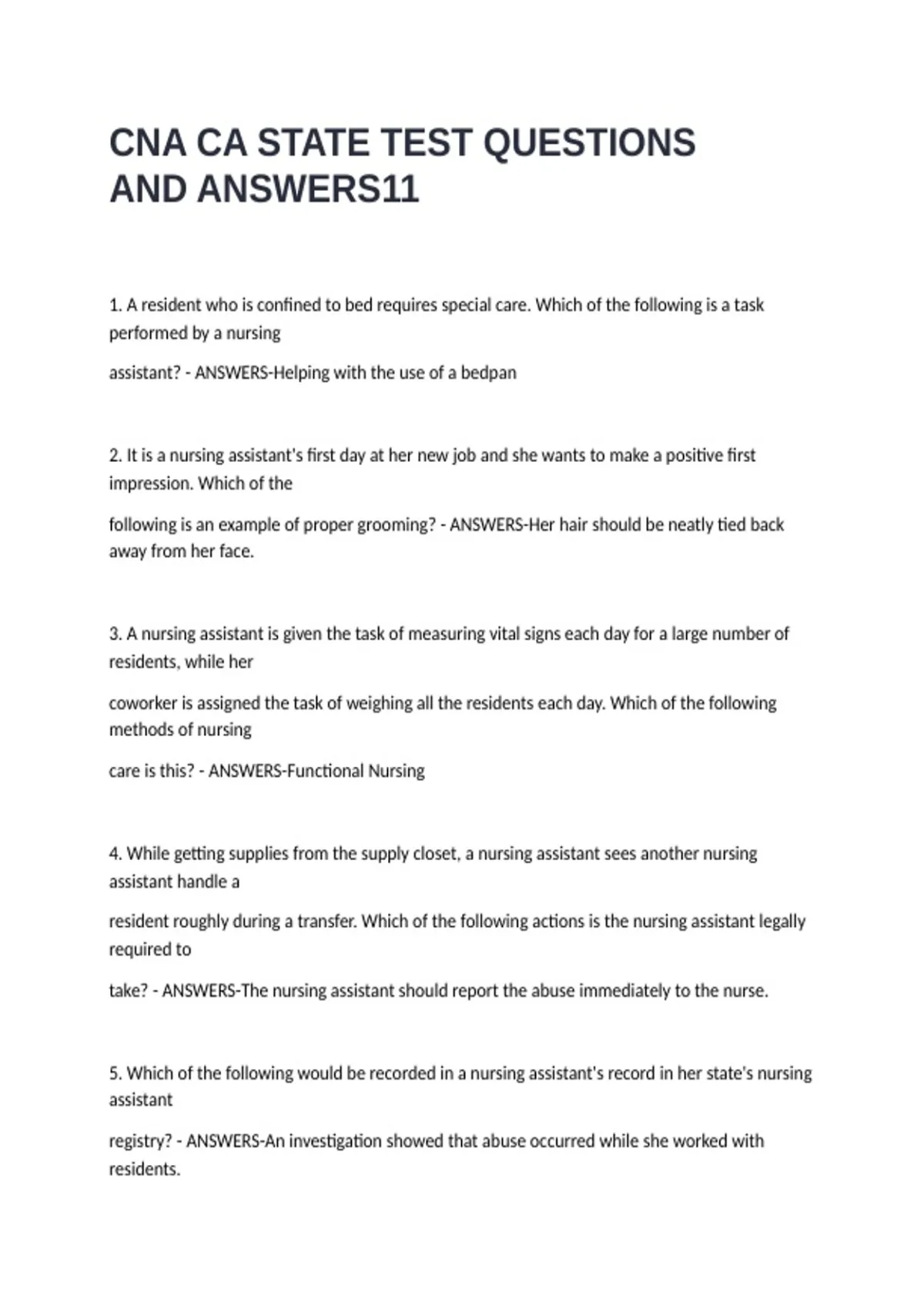CNA CA STATE TEST QUESTIONS AND ANSWERS