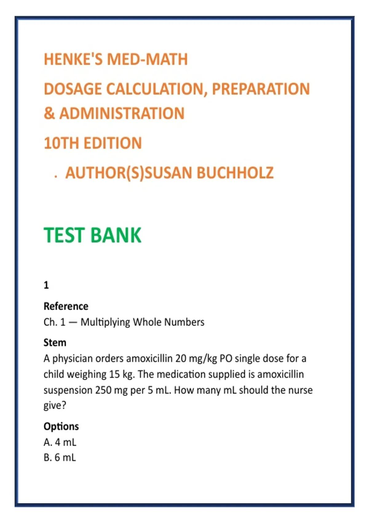 Buchholz, S. (2024). Henke’s Med-Math… Ch. 1.