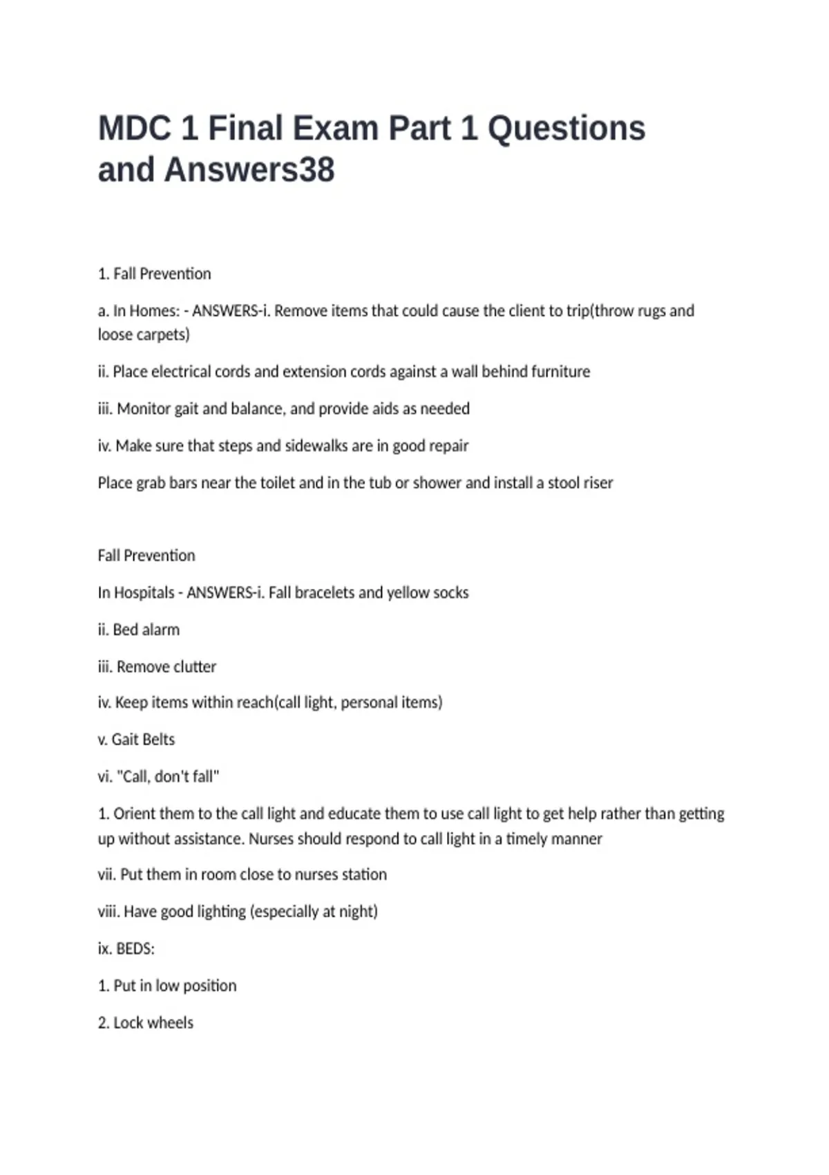 MDC 1 Final Exam Part 1 Questions and Answers