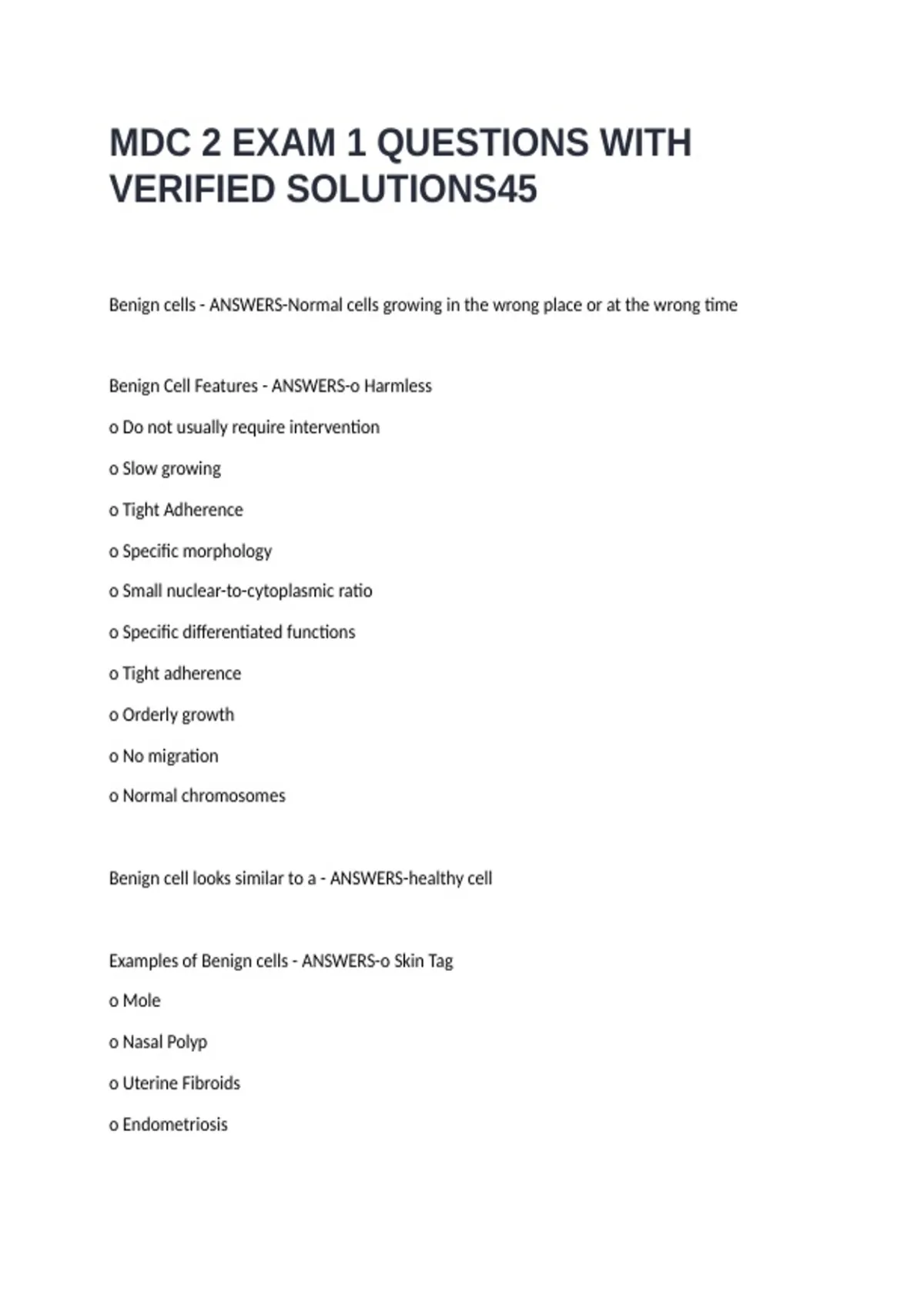 Benign cells - ANSWERS-Normal cells growing in the wrong place or at the wrong time