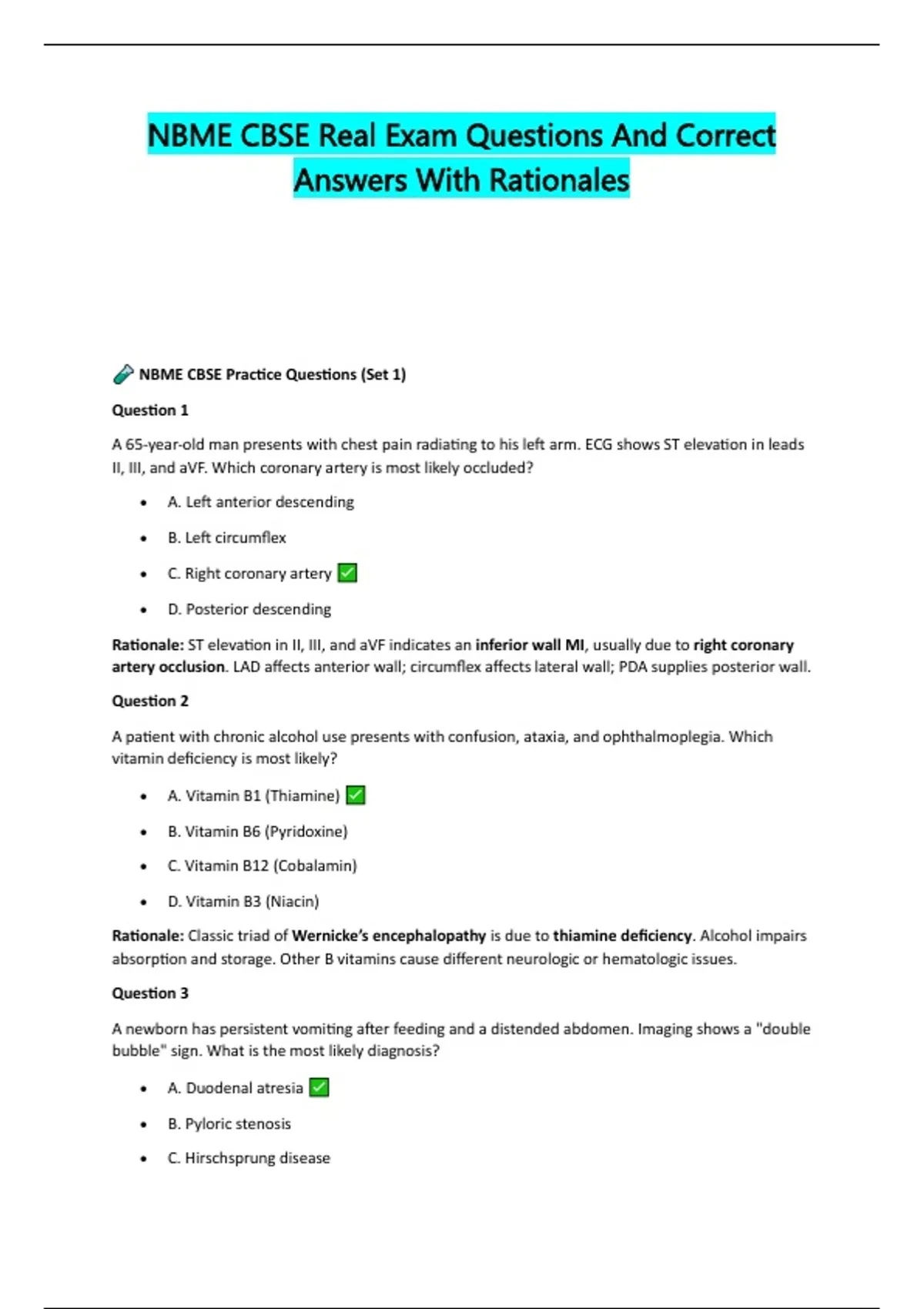NBME CBSE Real Exam Questions And Correct Answers With Rationales.