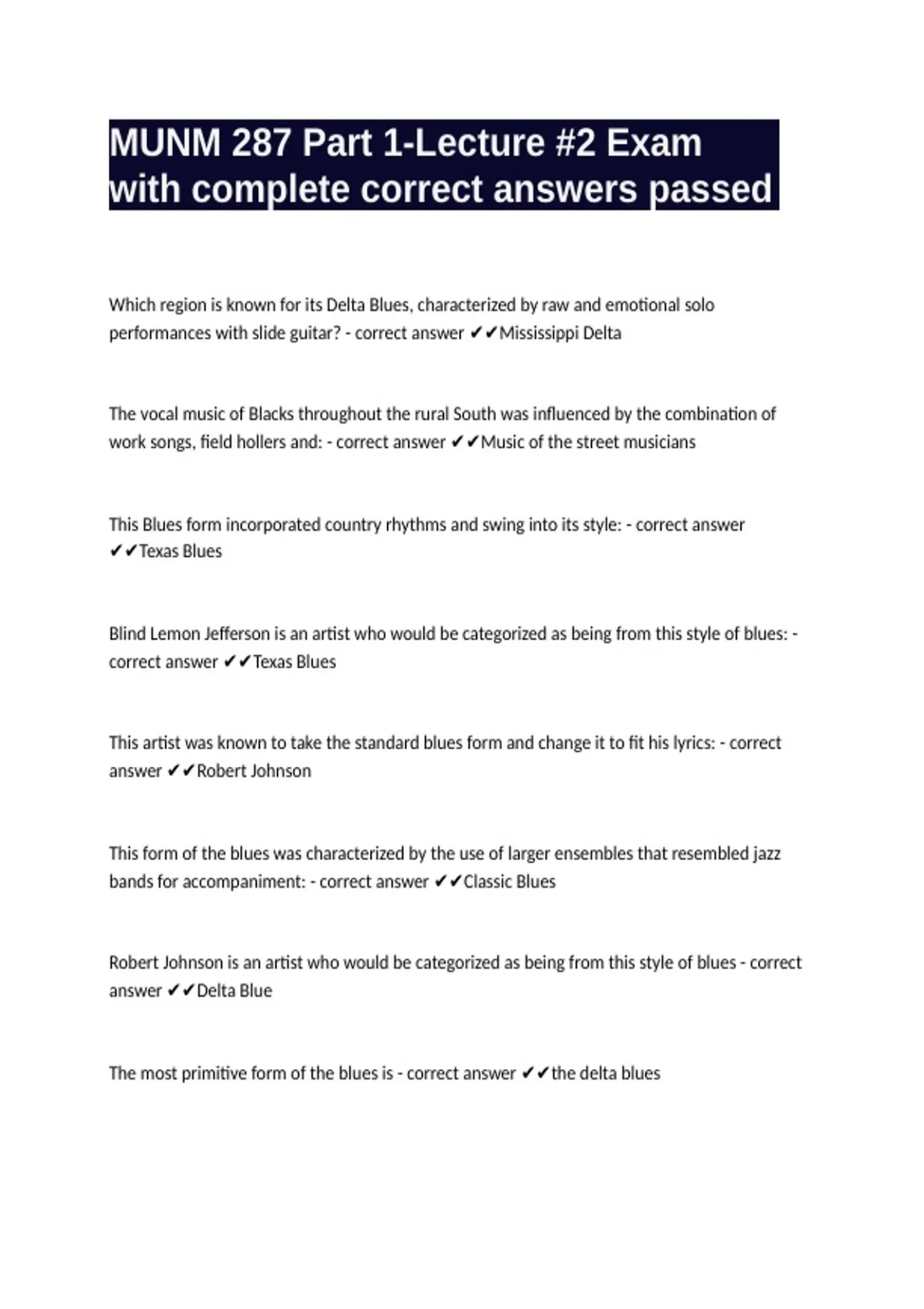 correct answer ✔✔Texas Blues