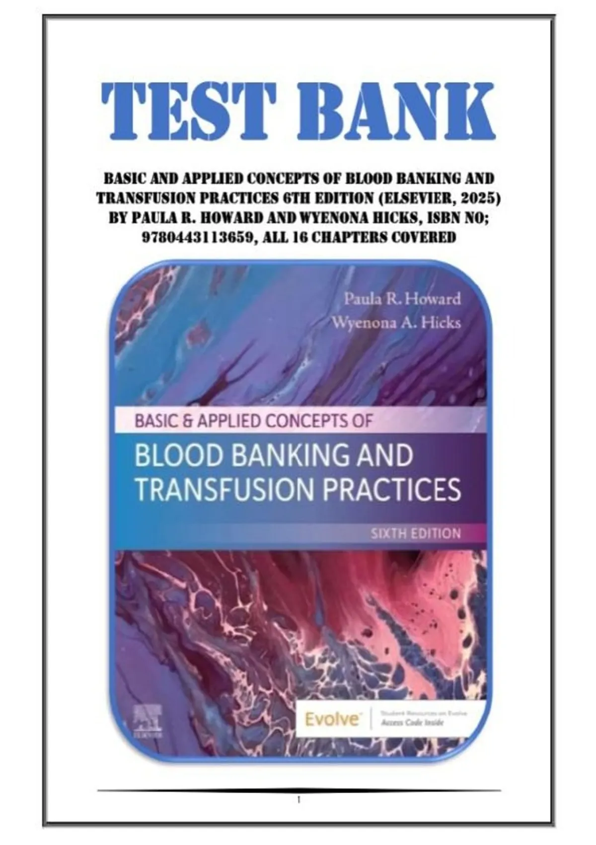 ,Test Bank For Basic & Applied Concepts of Blood Banking and Transfusion Practice 6th