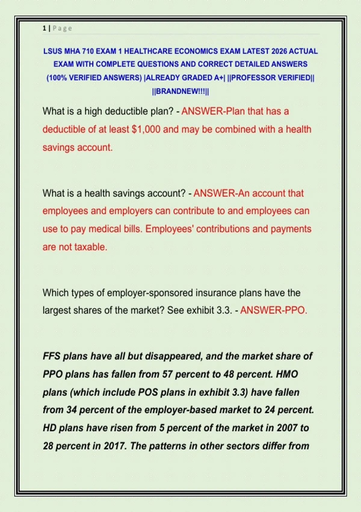 LSUS MHA 710 EXAM 1 HEALTHCARE ECONOMICS EXAM LATEST 2026 ACTUAL EXAM WITH COMPLETE QUESTIONS AND CORRECT DETAILED ANSWERS (100% VERIFIED ANSWERS) |ALREADY GRADED A+| ||PROFESSOR VERIFIED|| ||BRANDNEW!!!||