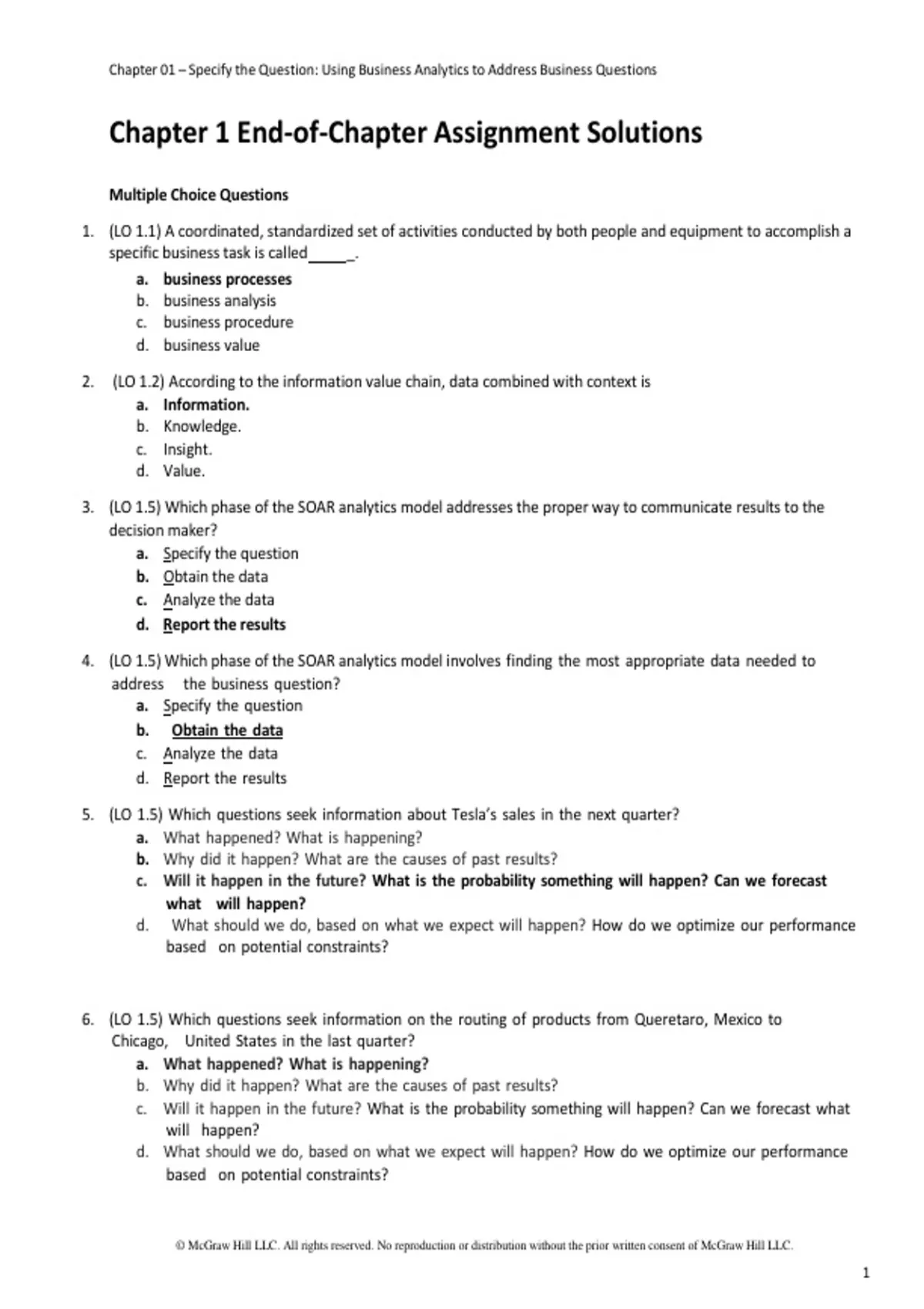 , Chapter 01 – Specify the Question: Using Business Analytics to Address Business Questions