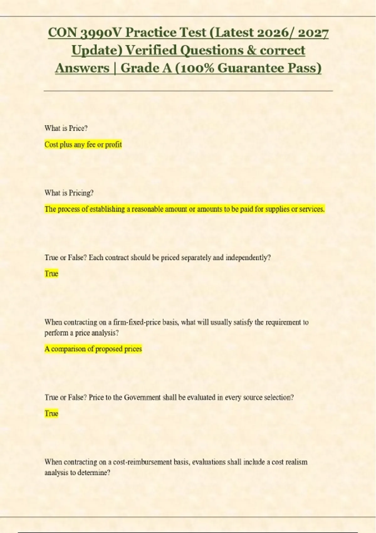 CON 399oV Practice Test (Latest 2026/ 2027 Update) Verified Questions & correct Answers | Grade A (100% Guarantee Pass)