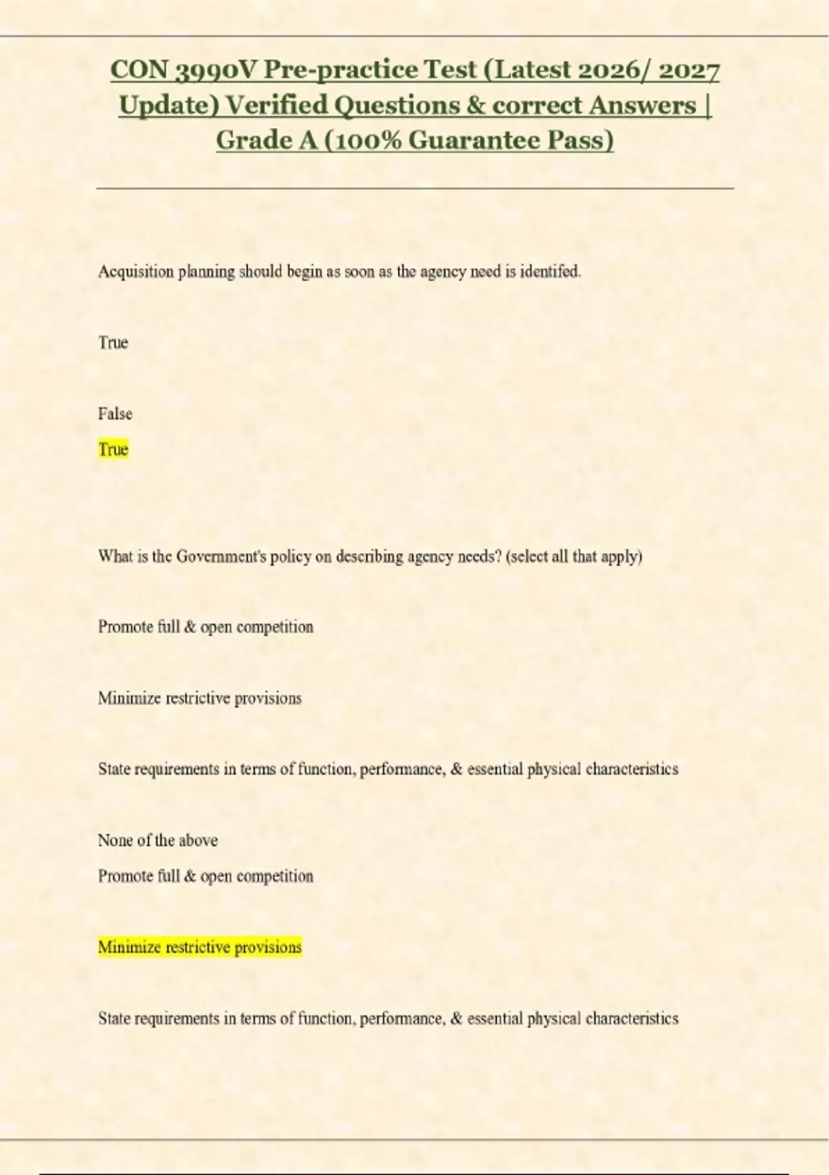 CON 3990V Pre-practice Test (Latest 2026/ 2027 Update) Verified Questions & correct Answers | Grade A (100% Guarantee Pass