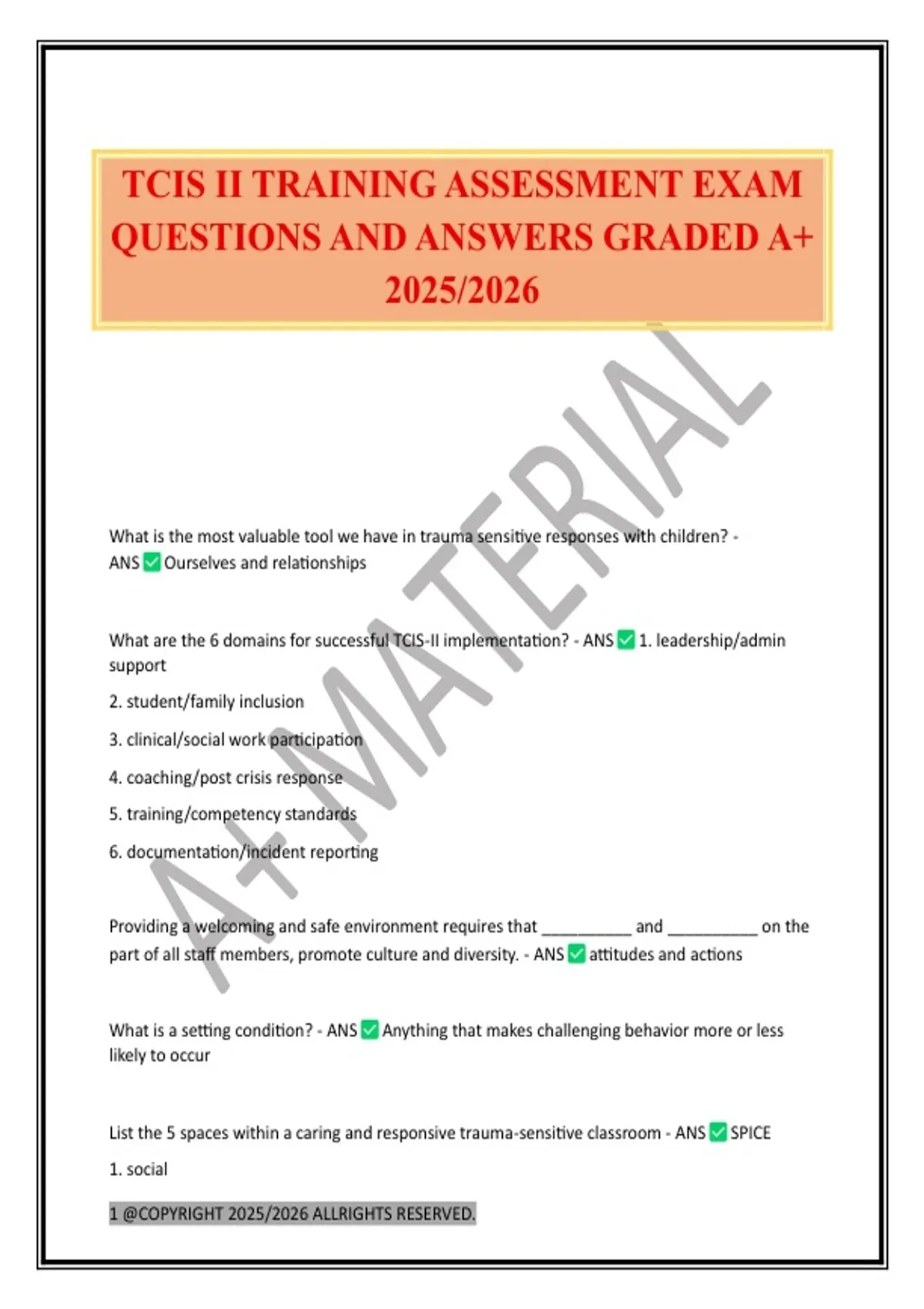 What are the 6 domains for successful TCIS-II implementation? - ANS 1. leadership/admin