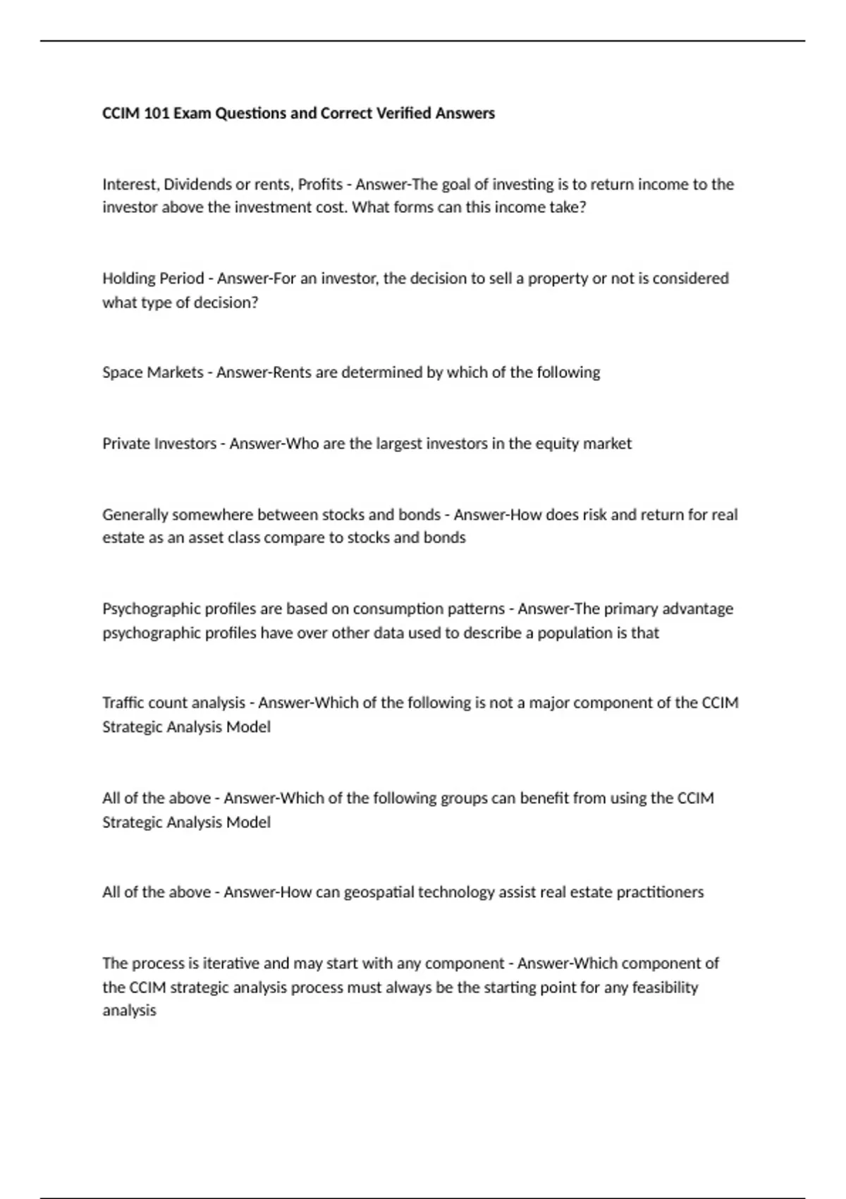 CCIM 101 Exam Questions and Correct Verified Answers