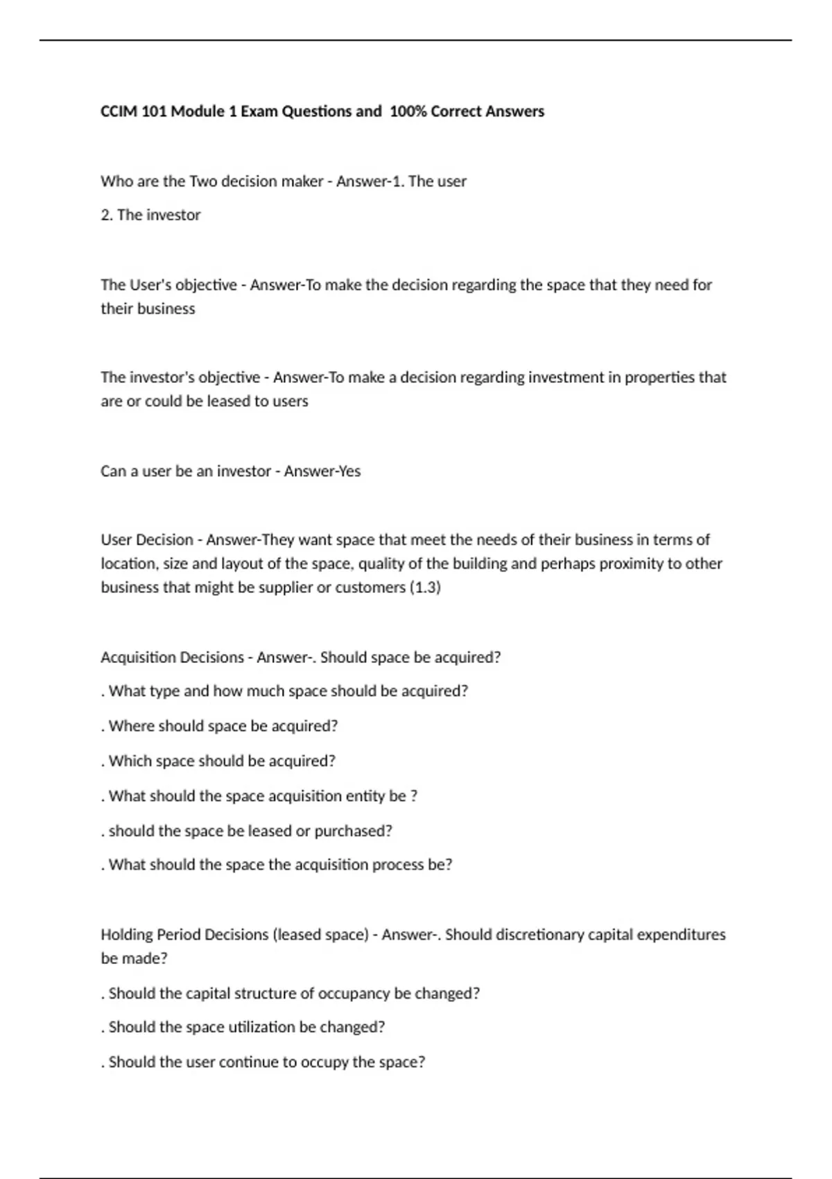 CCIM 101 Module 1 Exam Questions and 100% Correct Answers