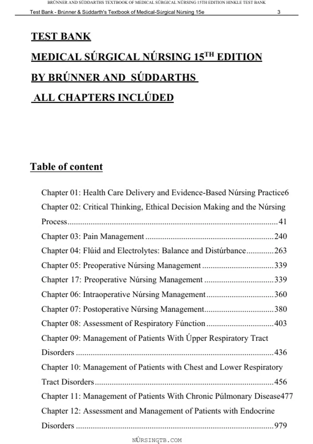 , BRÚNNER AND SÚDDARTHS TEXTBOOK OF MEDICAL SÚRGICAL NÚRSING 15TH EDITION HINKLE TEST BANK