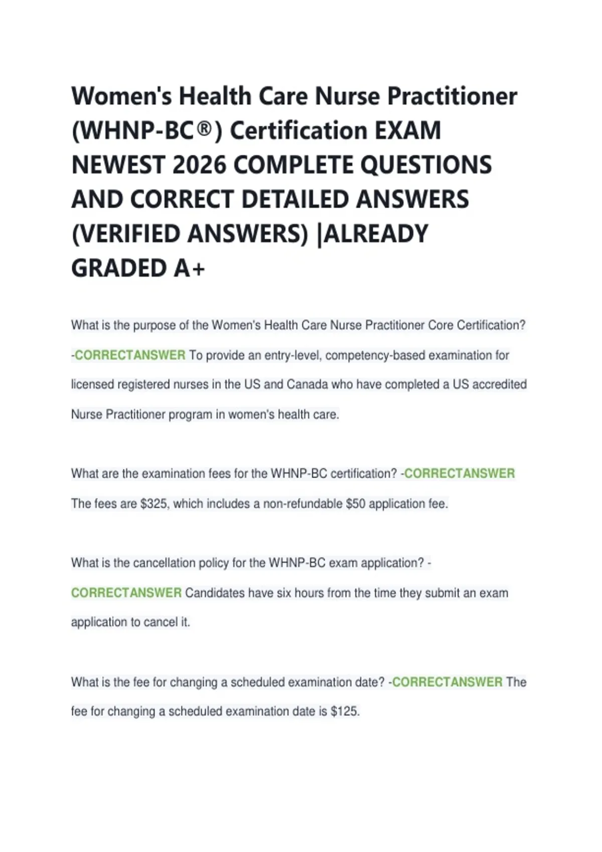 Women's Health Care Nurse Practitioner (WHNP-BC®) Certification EXAM NEWEST 2026 COMPLETE QUESTIONS AND CORRECT DETAILED ANSWERS (VERIFIED ANSWERS) |ALREADY GRADED A+