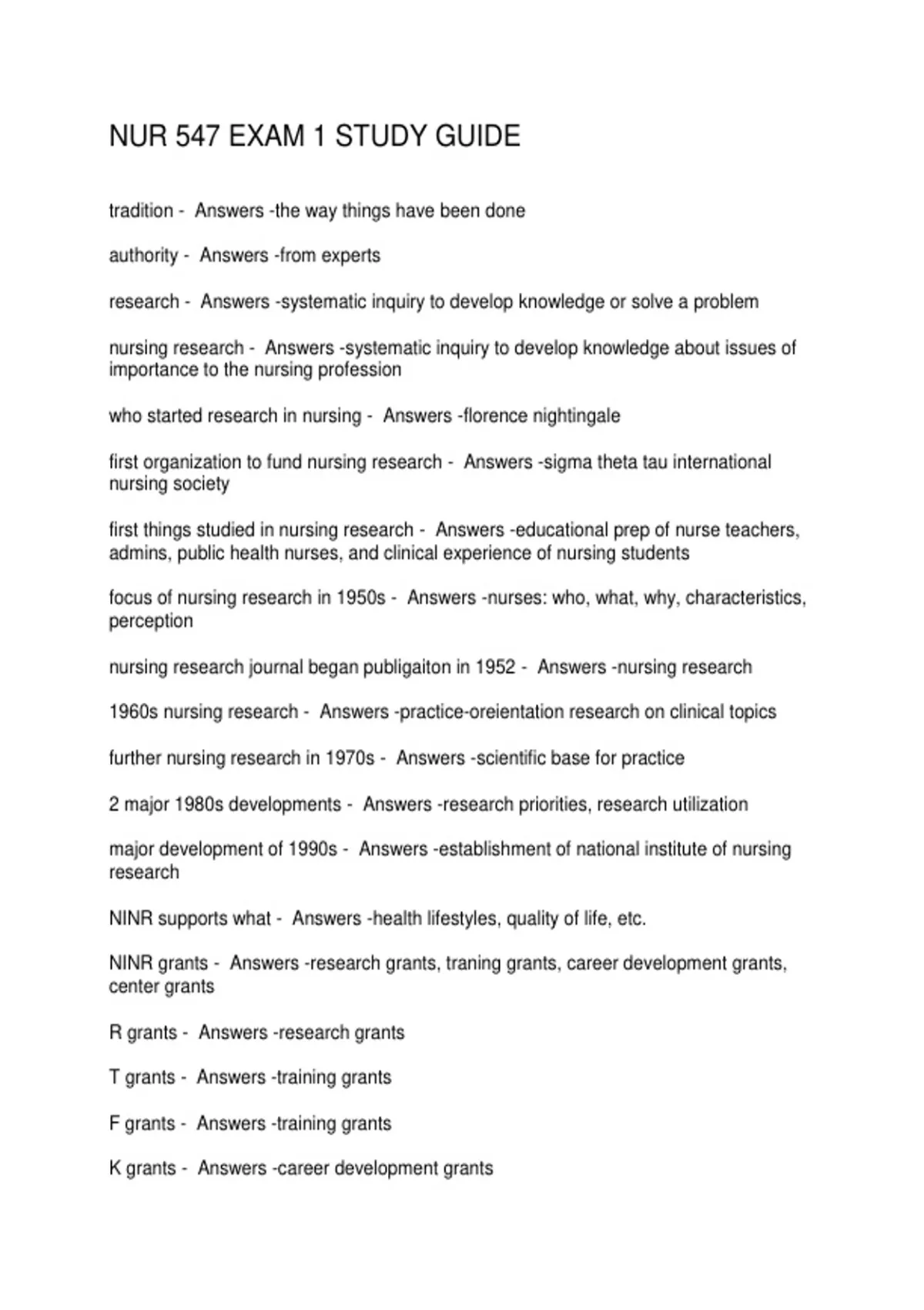 NUR 547 EXAM 1 STUDY GUIDE