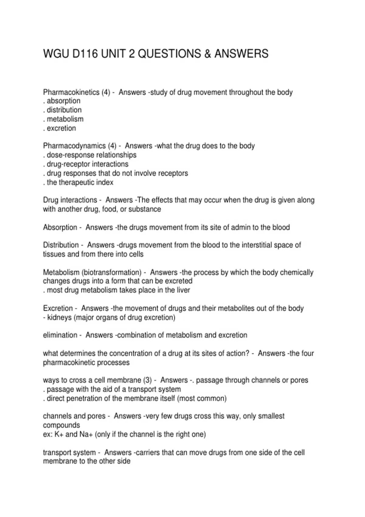 Pharmacokinetics (4) - Answers -study of drug movement throughout the body
