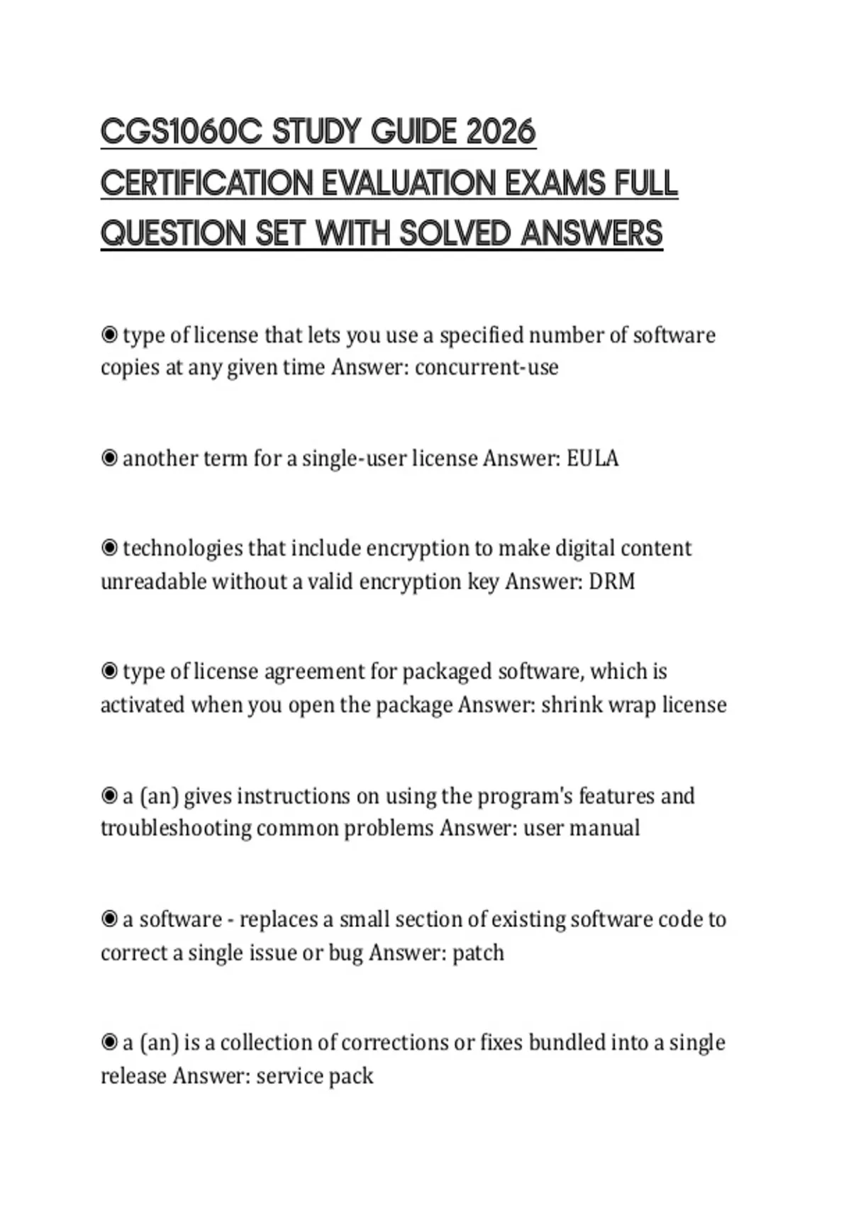 CGS1060C STUDY GUIDE 2026 CERTIFICATION EVALUATION EXAMS FULL QUESTION SET WITH SOLVED ANSWERS