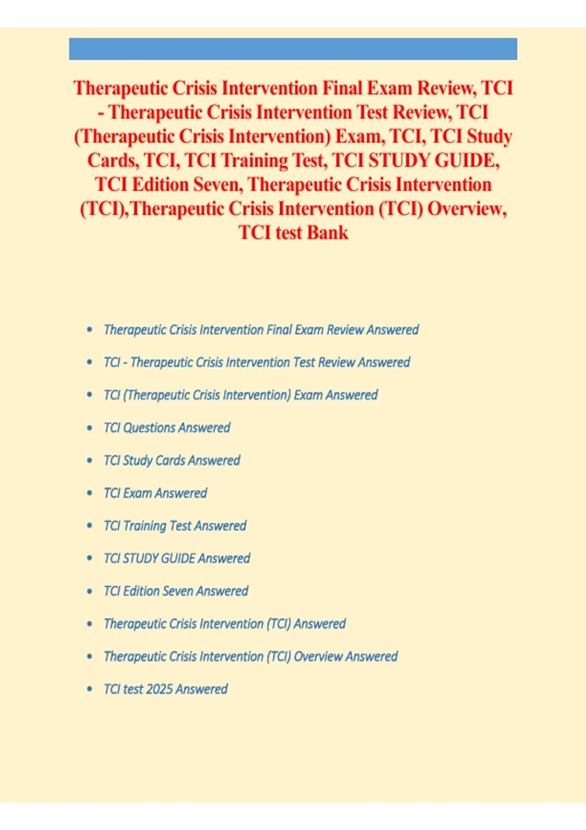 TCI - Therapeutic Crisis Intervention Test Review Answered