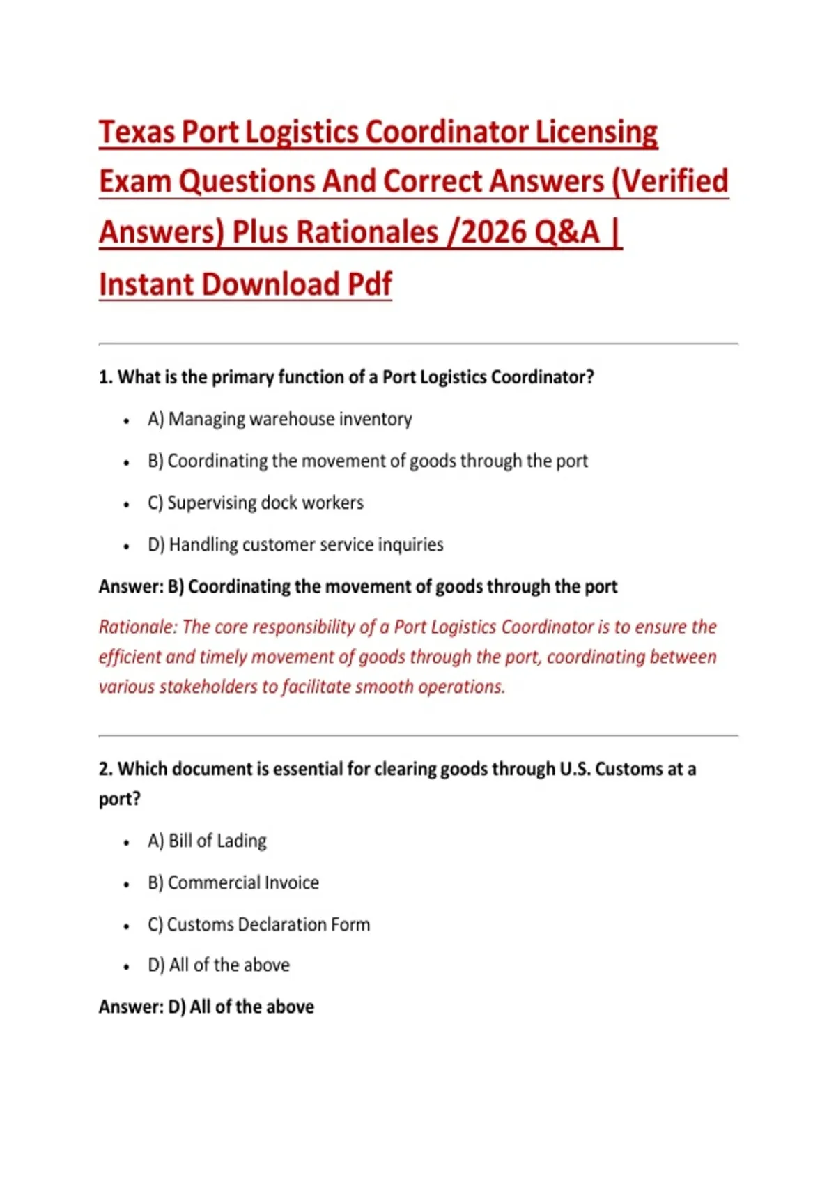 Rationale: The core responsibility of a Port Logistics Coordinator is to ensure the