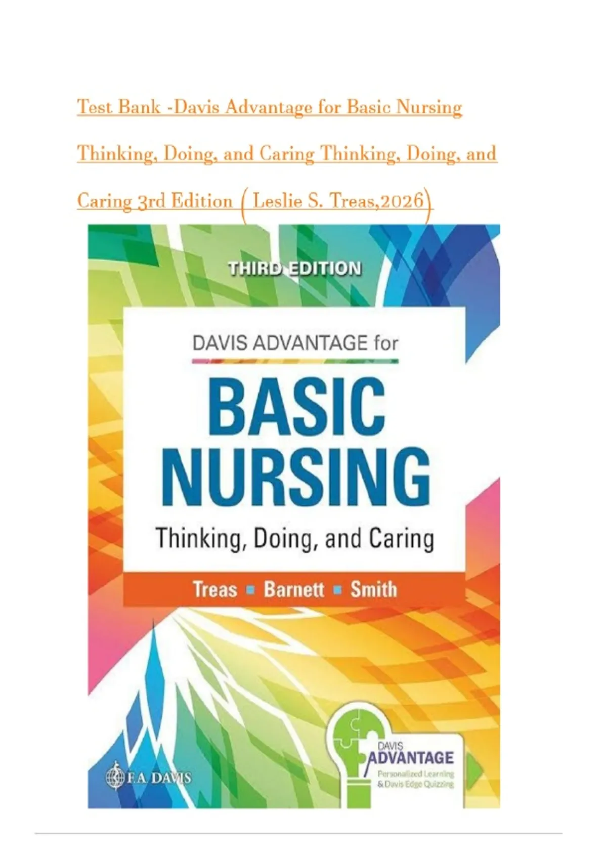 Test Bank -Davis Advantage for Basic Nursing Thinking, Doing, and Caring Thinking, Doing, and Caring 3rd Edition ( Leslie S. Treas,2024 ) Newest Edition