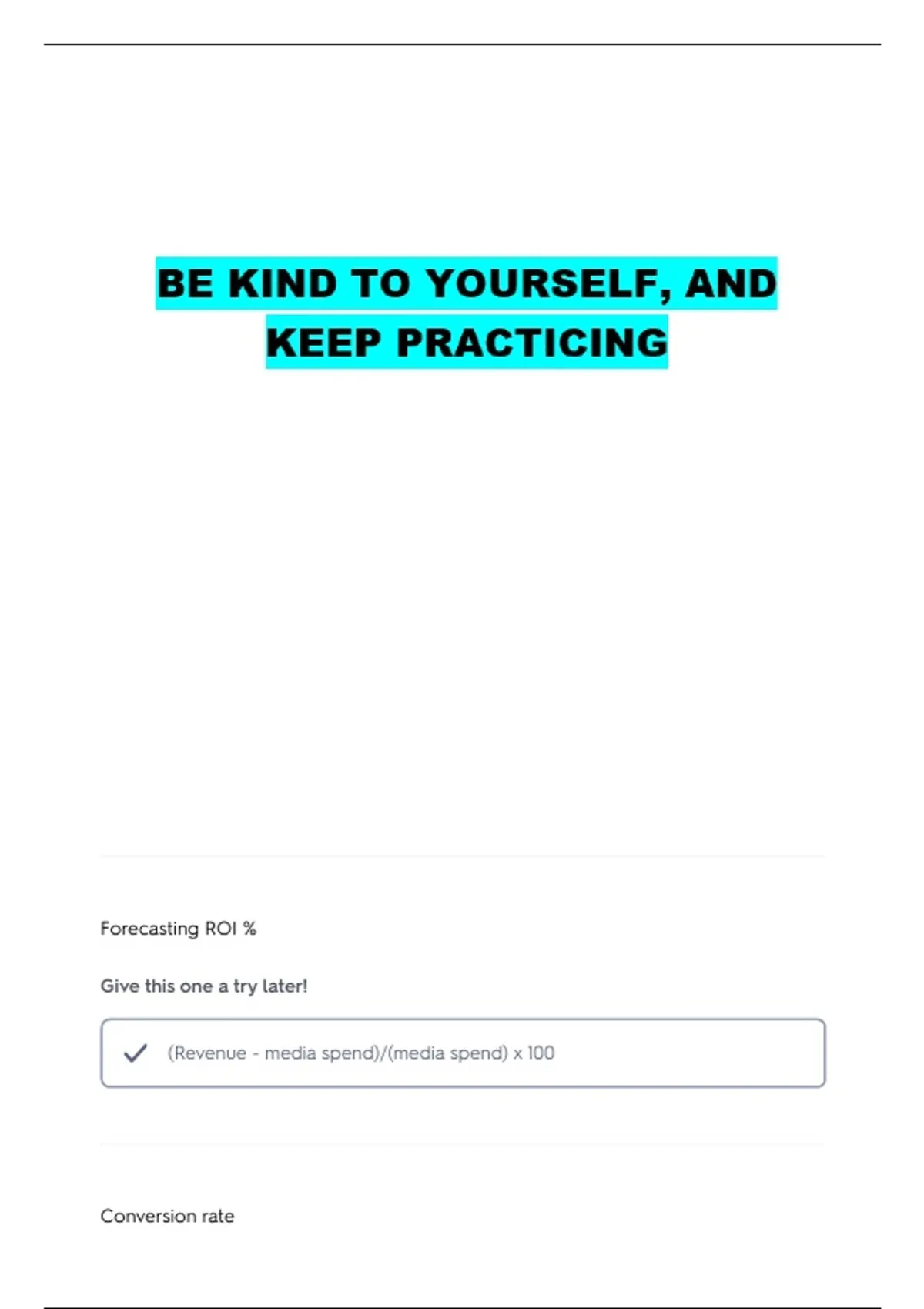 (Revenue - media spend)/(media spend) x 100