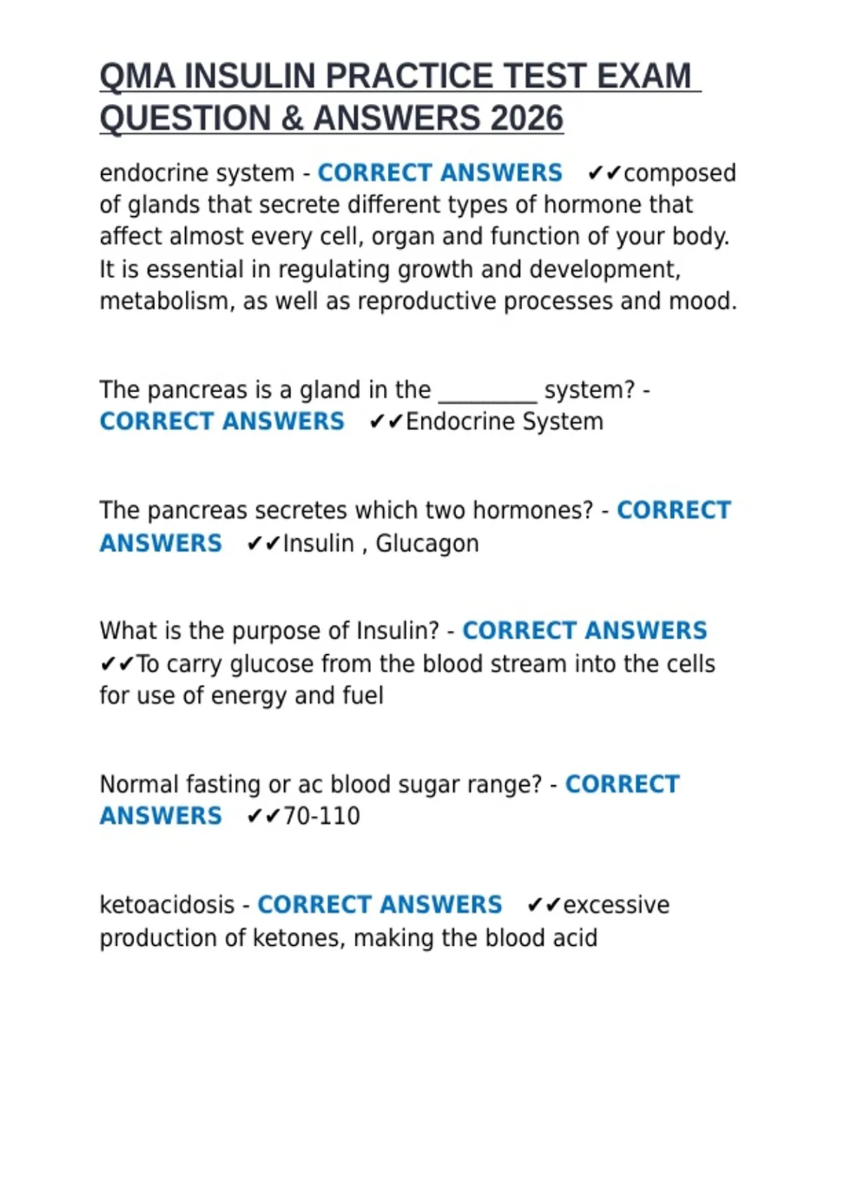 What is the purpose of Insulin? - CORRECT ANSWERS