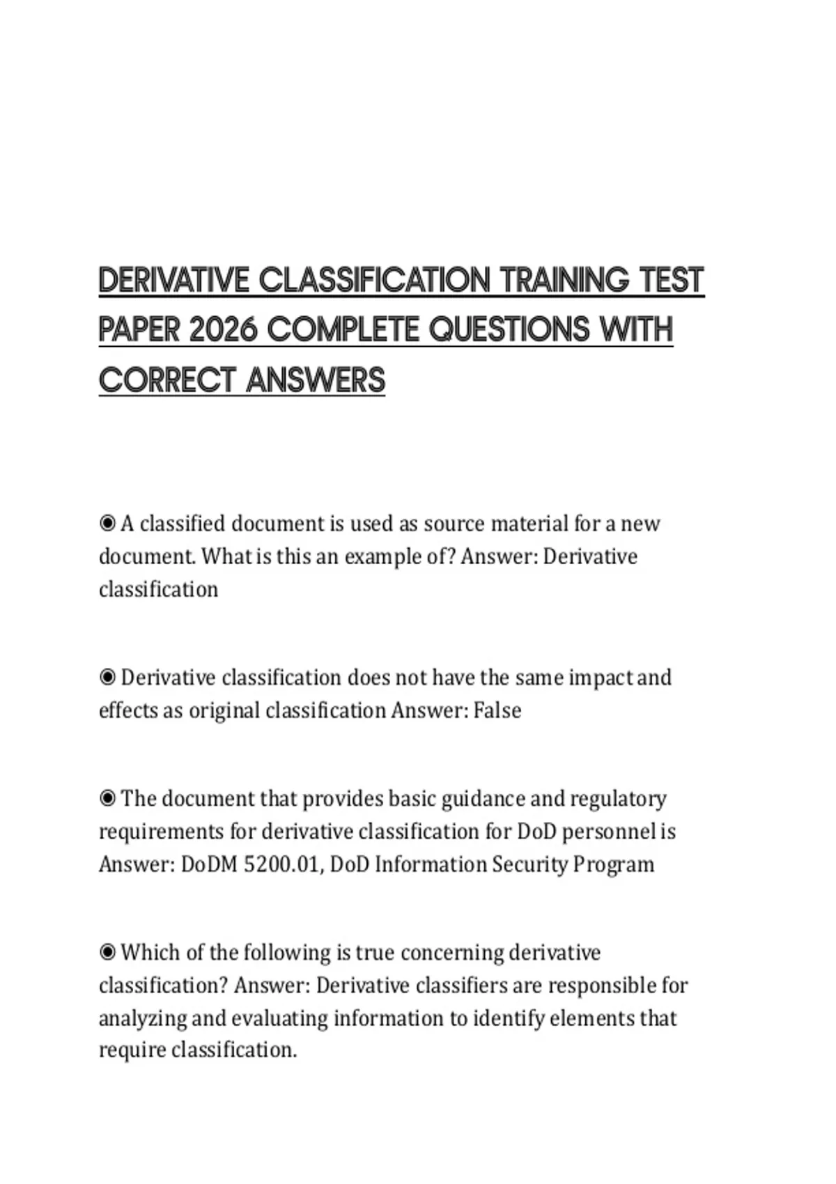 ◉ All of the following are steps in derivative classification EXCEPT: