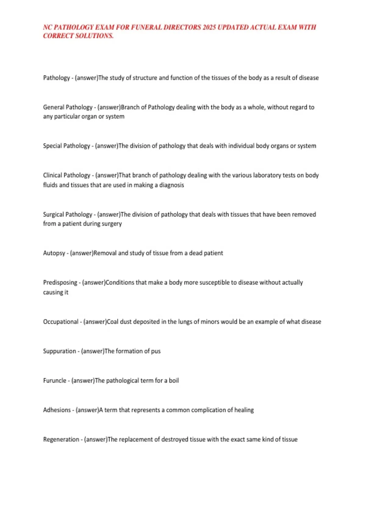 NC PATHOLOGY EXAM FOR FUNERAL DIRECTORS 2025 UPDATED ACTUAL EXAM WITH