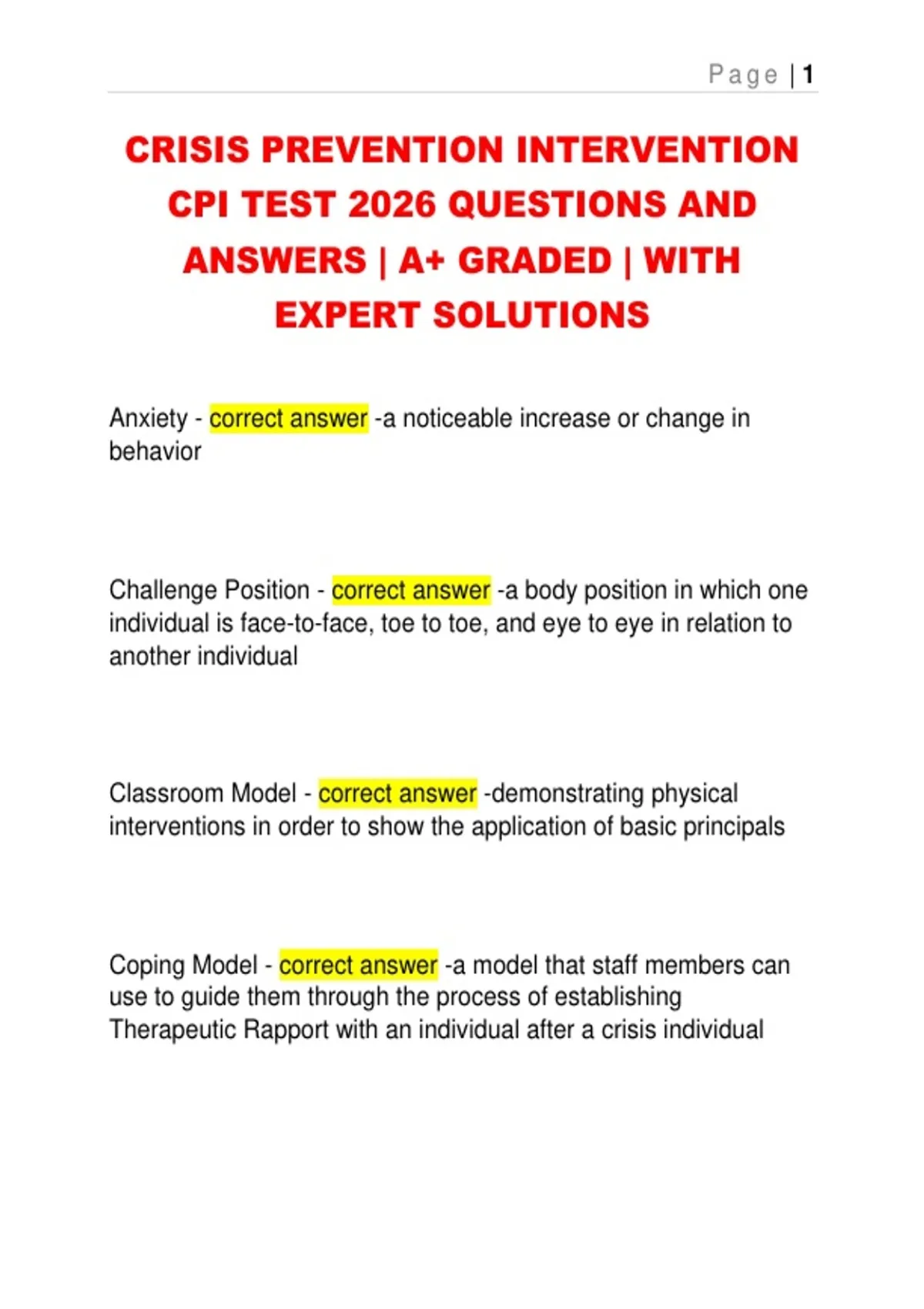 CRISIS PREVENTION INTERVENTION