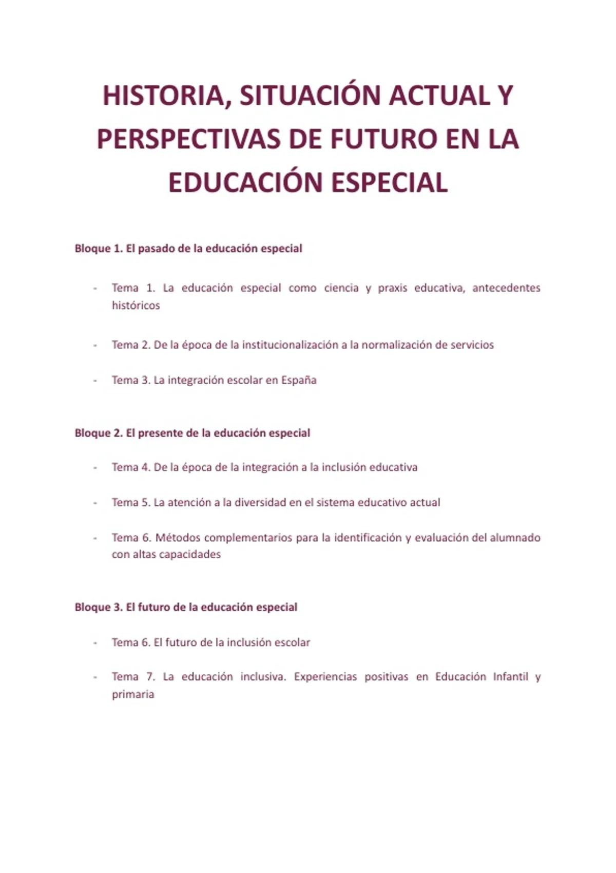 Bloque 2. El presente de la educación especial