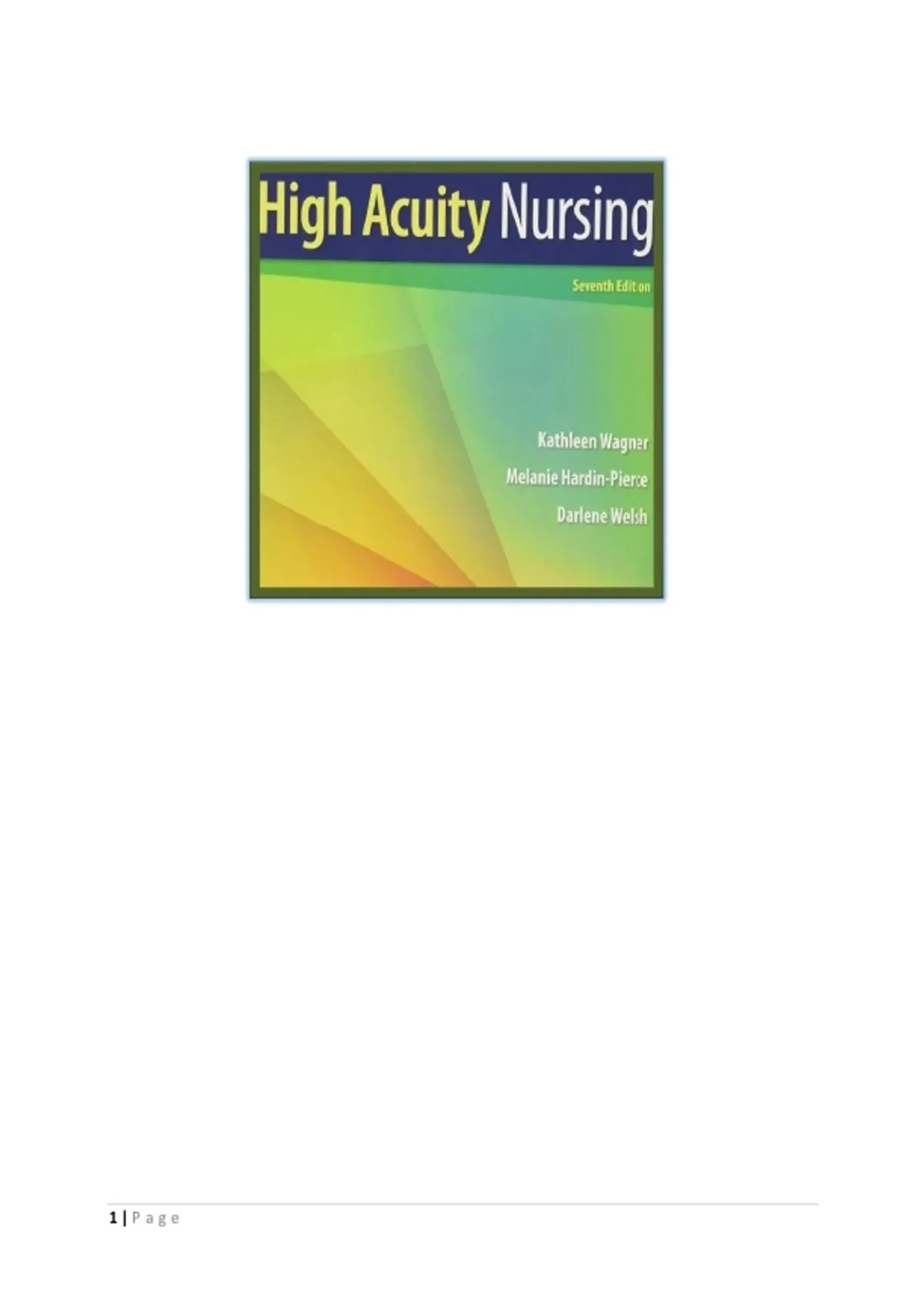 TEST BANK FOR High-Acuity Nursing 7th Edition by Kathleen Wagner, Melanie Hardin-Pierce, Darlene Welsh, Karen Johnson ISBN:978-0134459295 COMPLETE GUIDE ALL CHAPTERS COVERED 100% VERIFIED A+ GRADE ASSURED!!!!NEW LATEST UPDATE!!!!