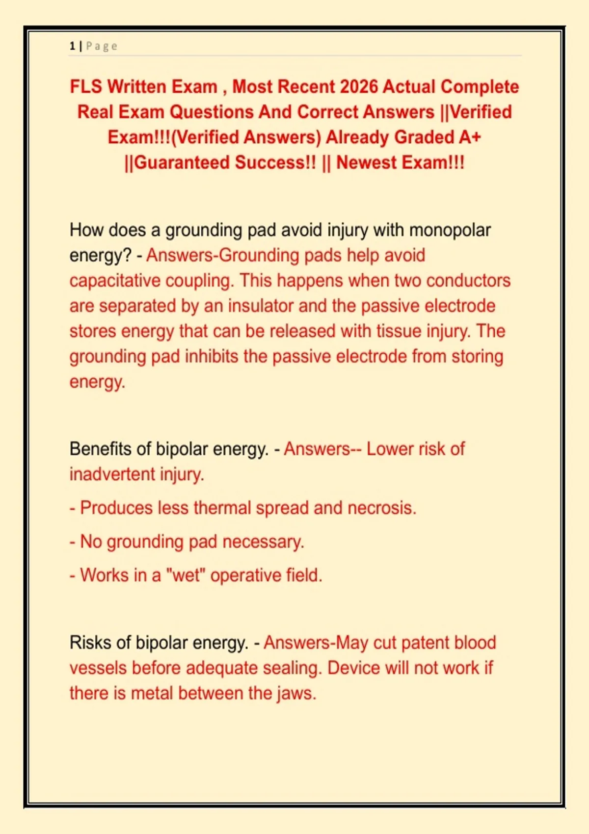 Risks of bipolar energy. - Answers-May cut patent blood