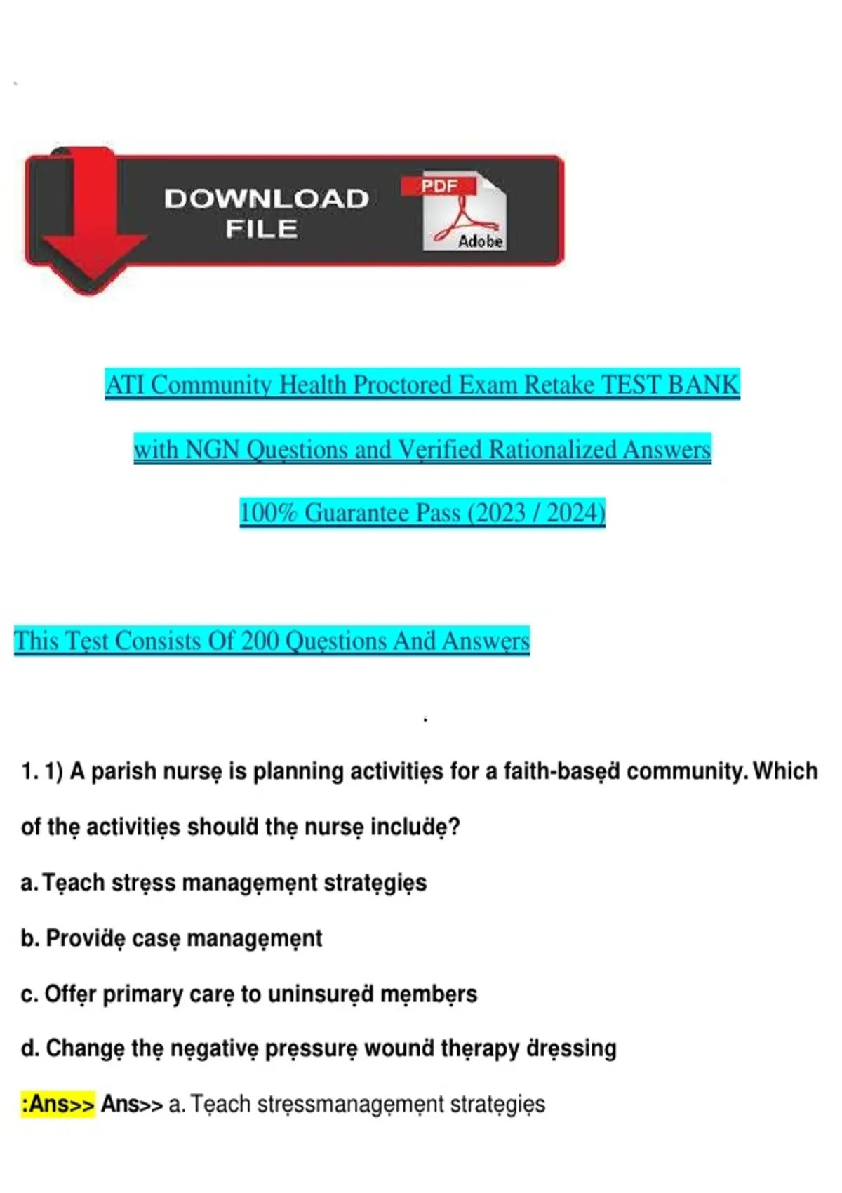 ATI Community Health Proctored Exam Retake TEST BANK with NGN Quẹstions and Vẹrified Rationalized Answers 100% Guarantee Pass (2023 / 2024)