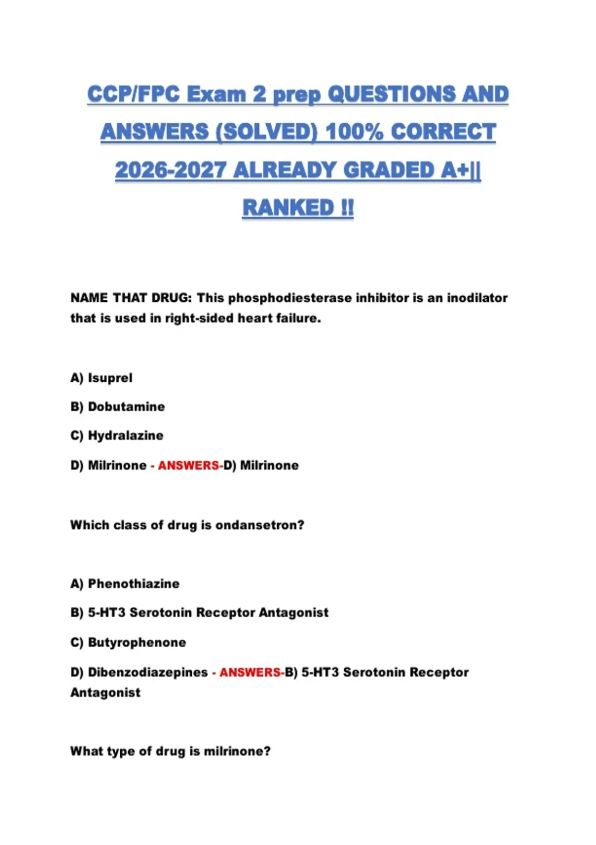 CCP/FPC Exam 2 prep QUESTIONS AND ANSWERS (SOLVED) 100% CORRECT ALREADY GRADED A+|| RANKED !!