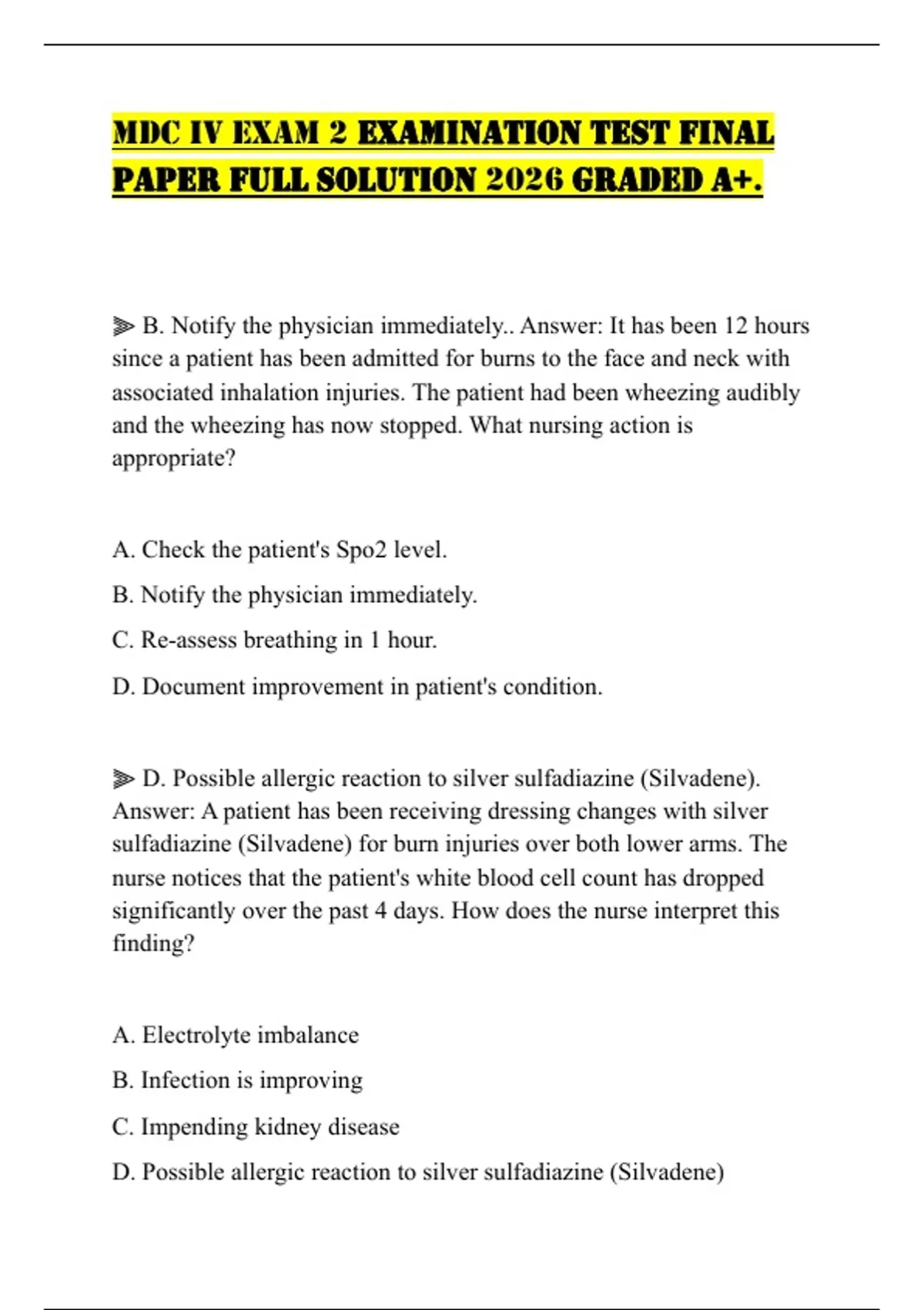 MDC IV EXAM 2 EXAMINATION TEST FINAL PAPER FULL SOLUTION 2026 GRADED A+.