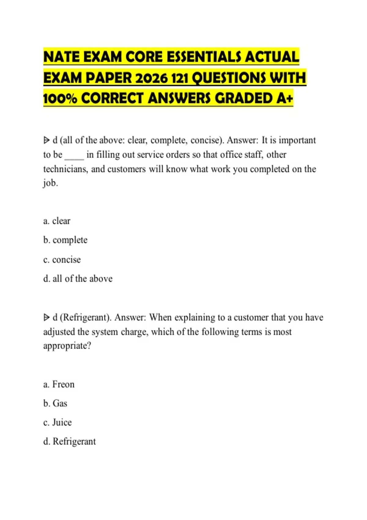 EXAM PAPER 2026 121 QUESTIONS WITH