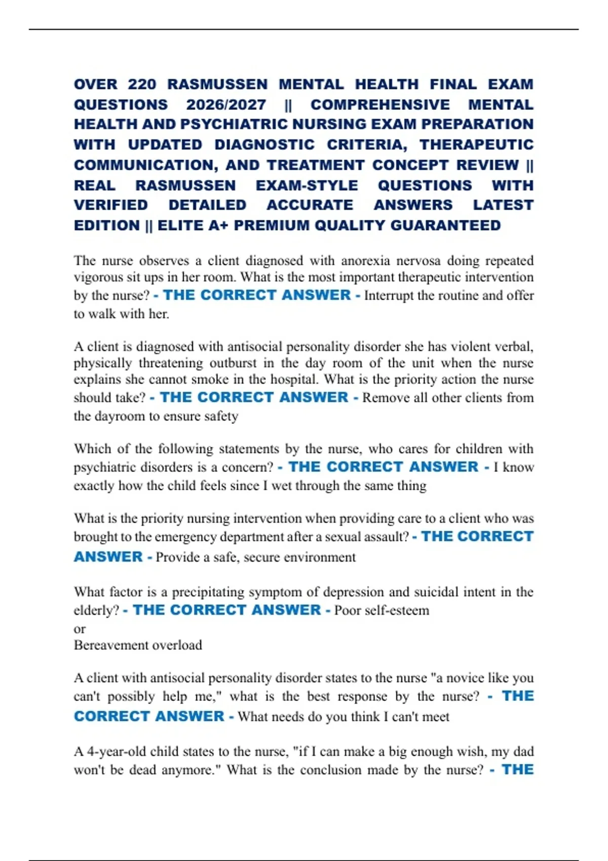 HEALTH AND PSYCHIATRIC NURSING EXAM PREPARATION