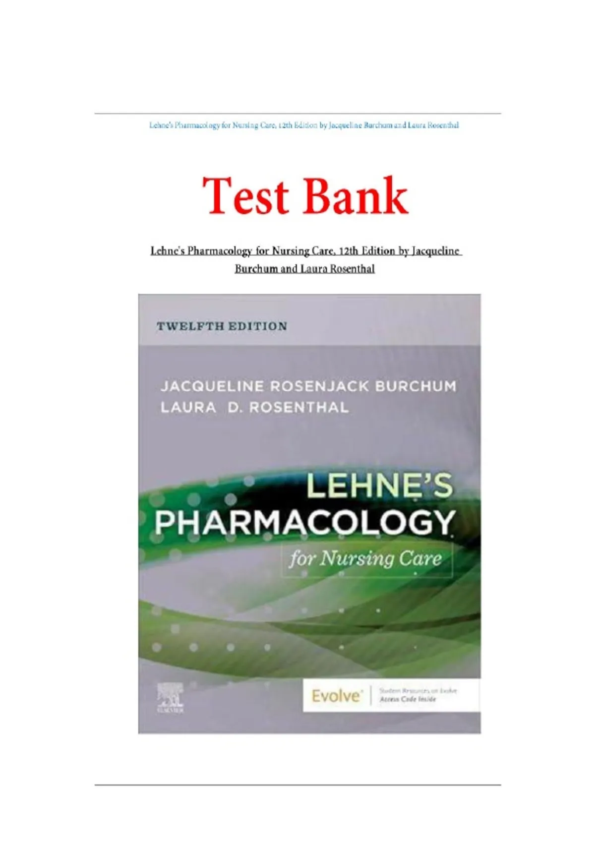 Test Bank Lehne's Pharmacology for Nursing Care, 12th Edition by Jacqueline Burchum, Laura Rosenthal