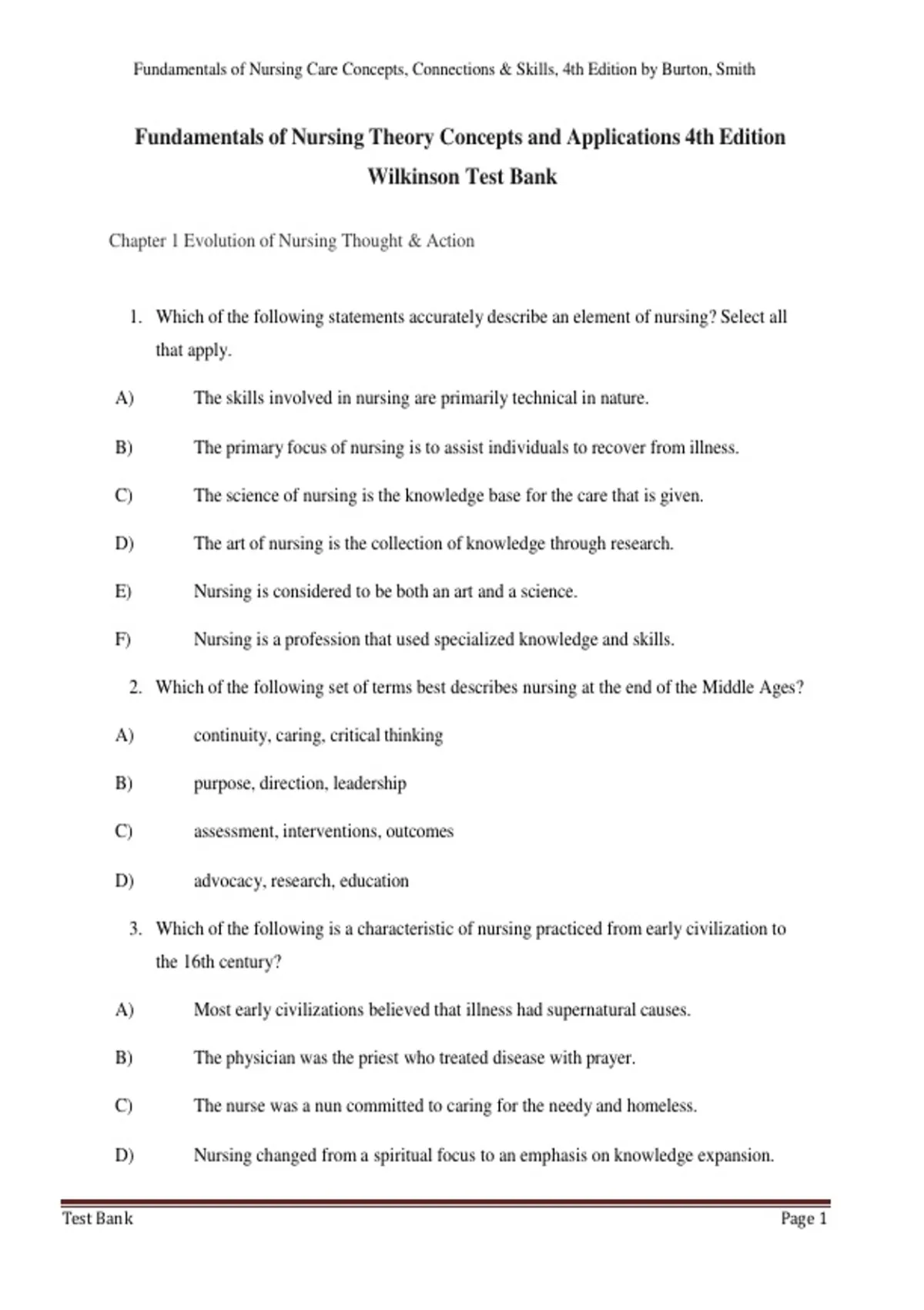 647 freshness top STUVIA SELLER-Fundamentals of Nursing Theory Concepts and Applications 4th Edition Wilkinson Test Bank Page 1