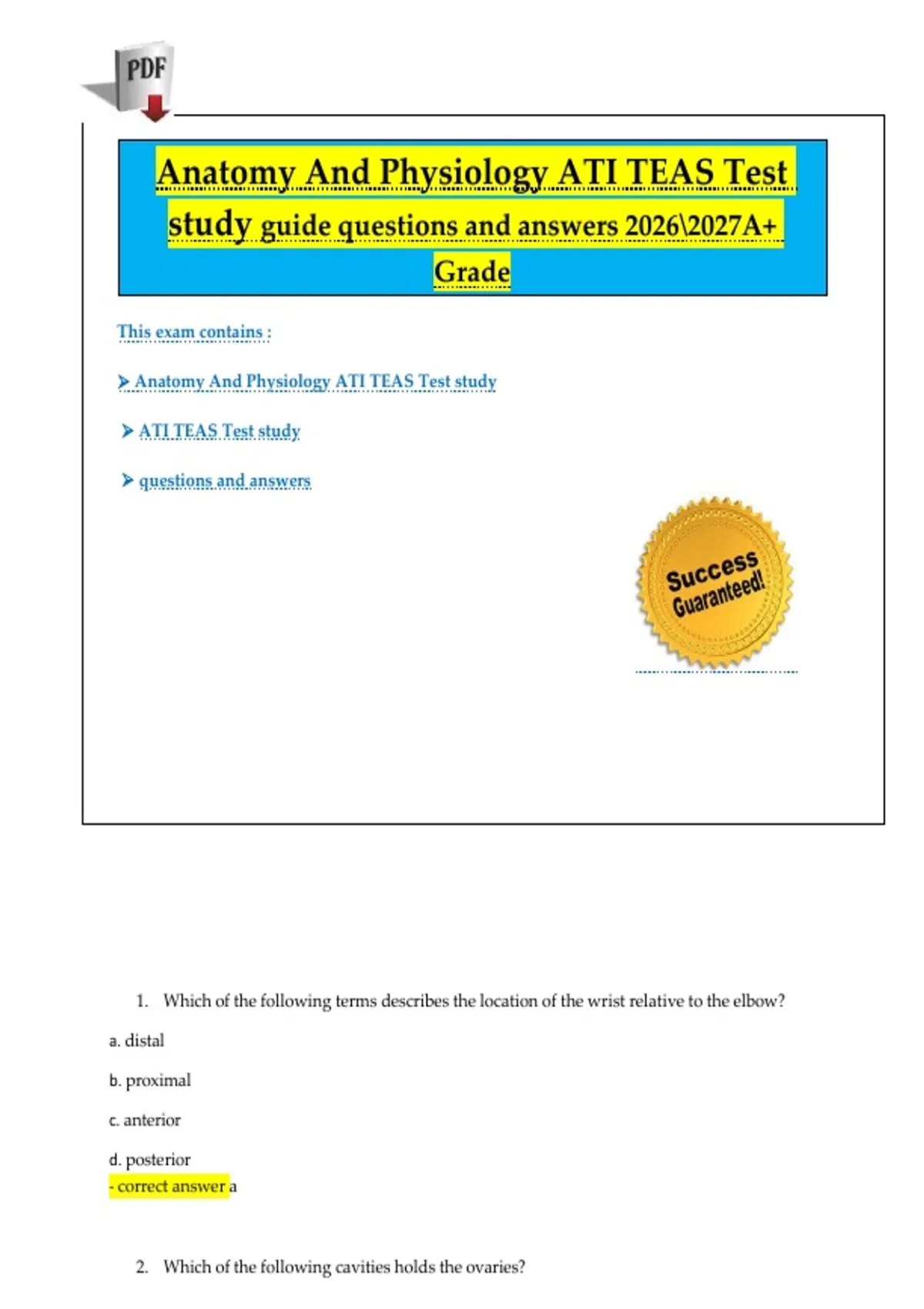 1. Which of the following terms describes the location of the wrist relative to the elbow?