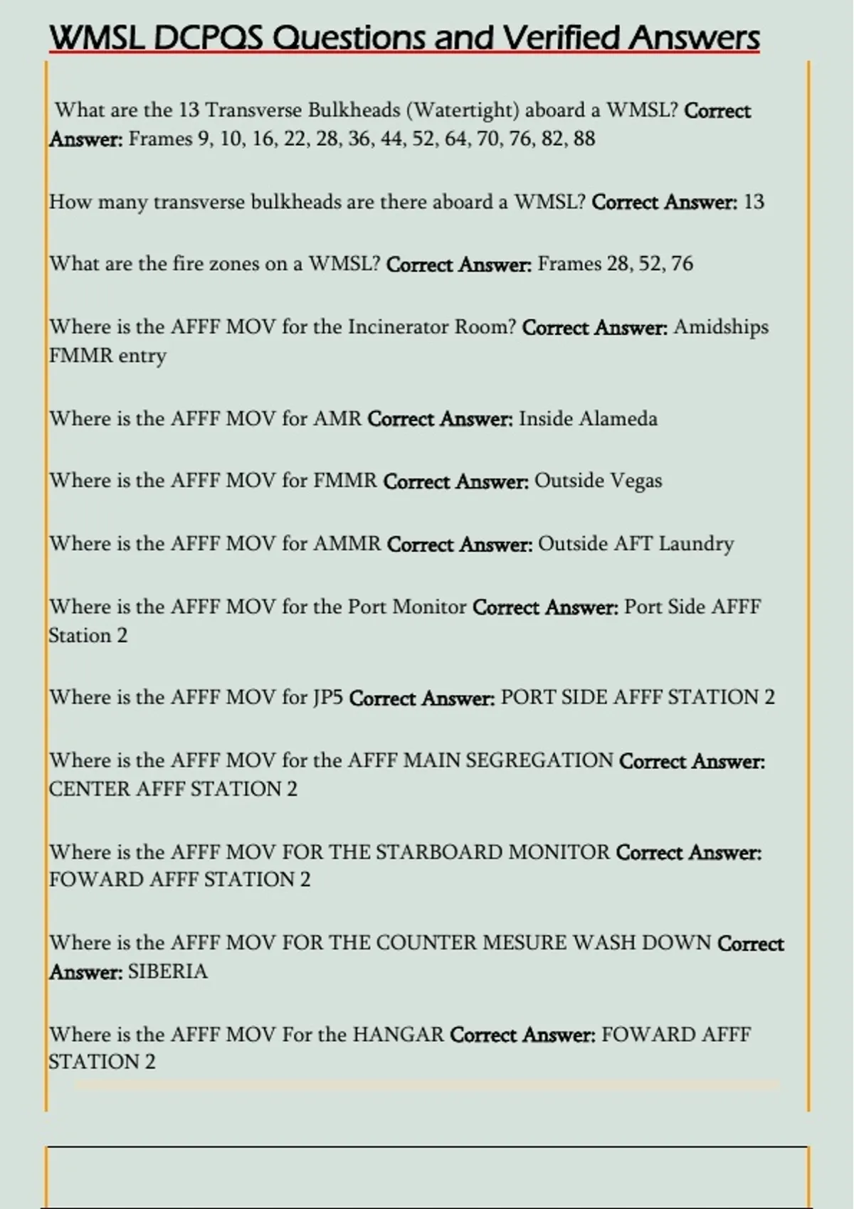 WMSL DCPQS Questions and Verified Answers