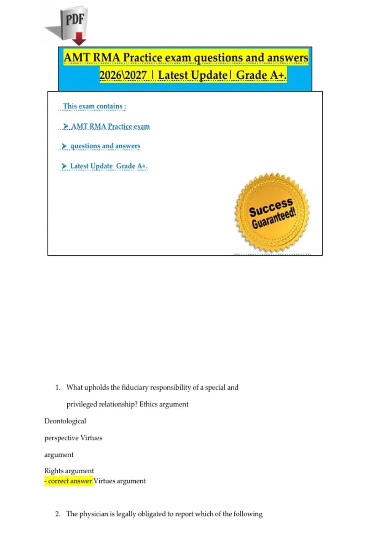 AMT RMA Practice exam
