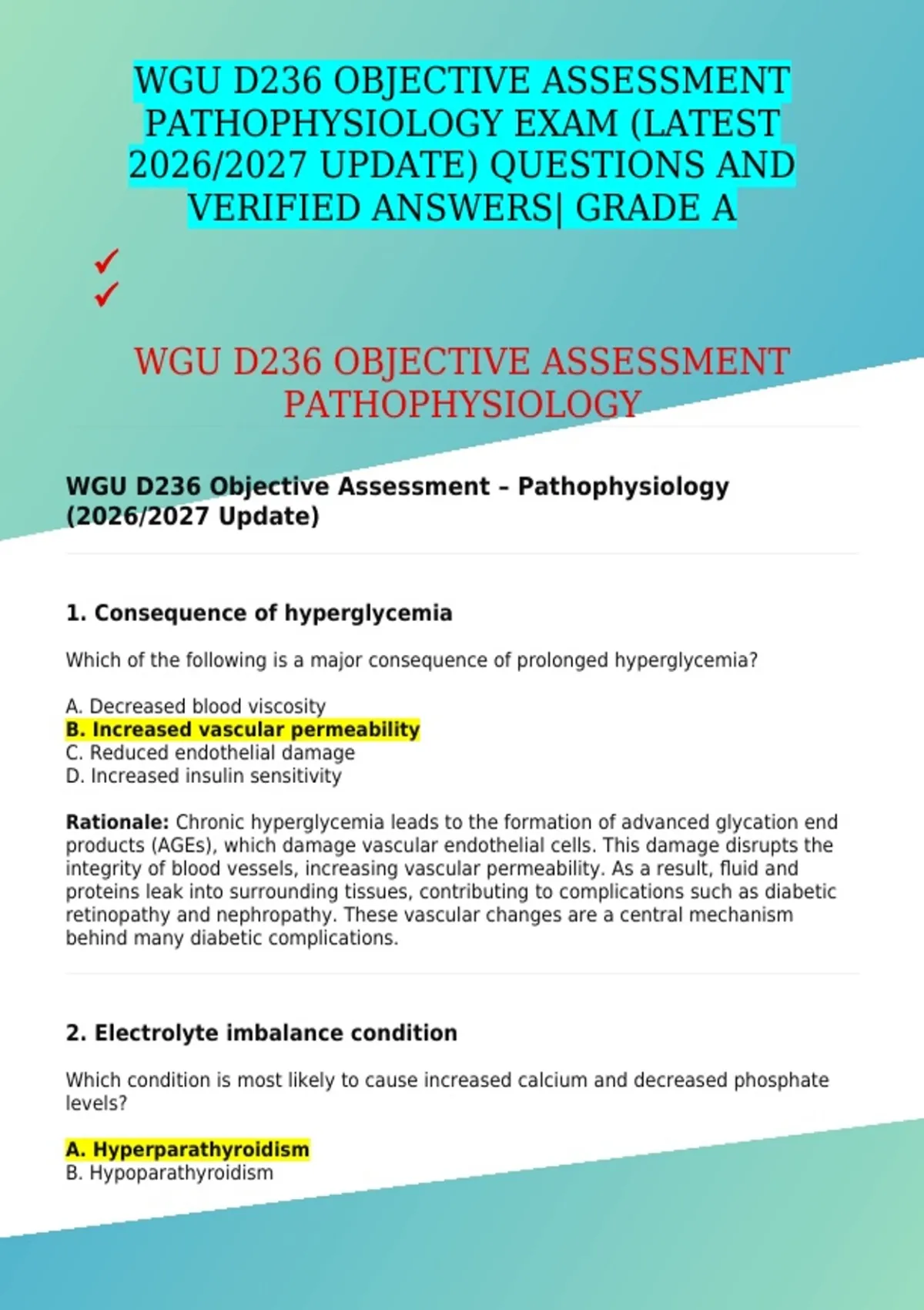 WGU D236 Objective Assessment – Pathophysiology
