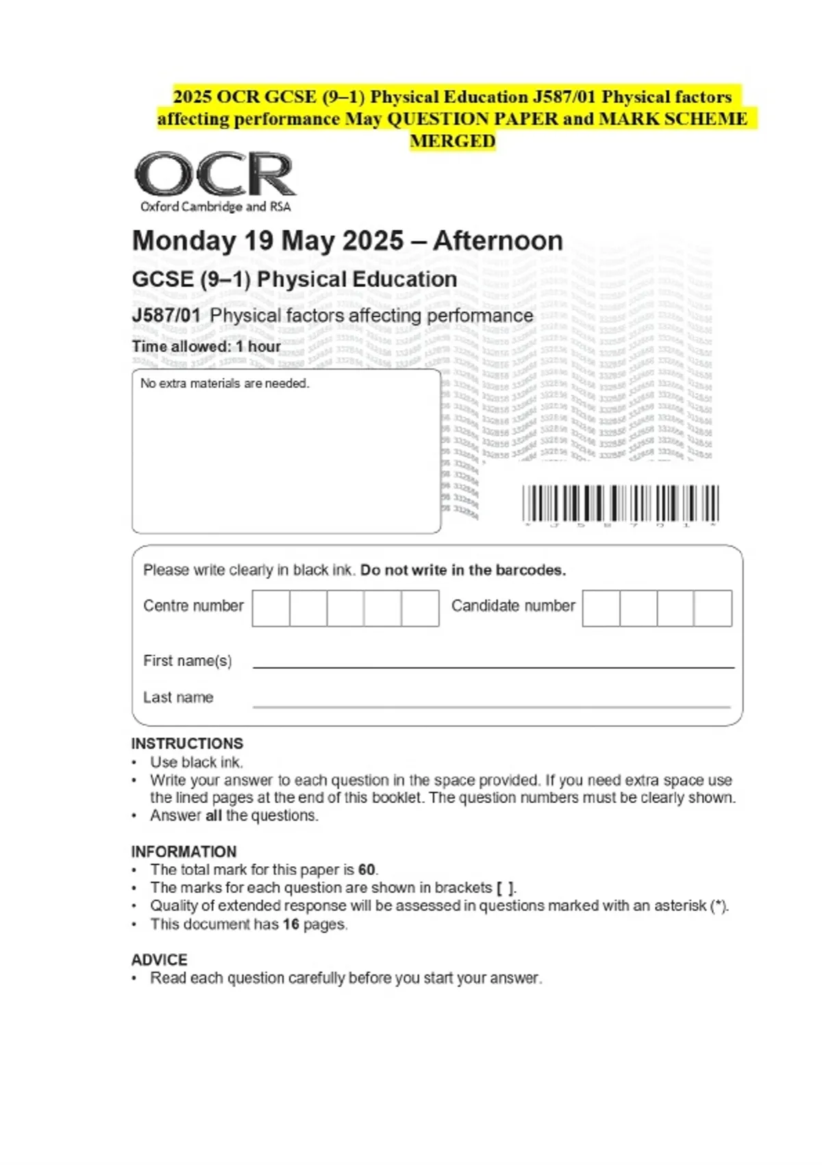 2025 OCR GCSE (9–1) Physical Education J587/01 Physical factors affecting performance May QUESTION PAPER and MARK SCHEME MERGED