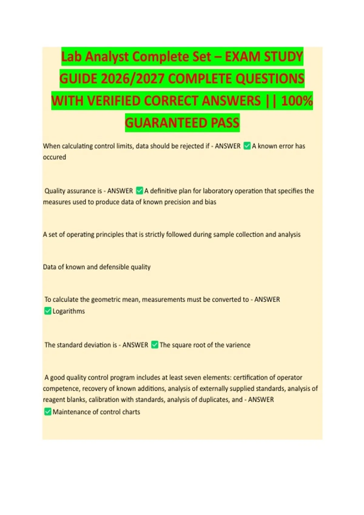 Quality assurance is - ANSWER A definitive plan for laboratory operation that specifies the