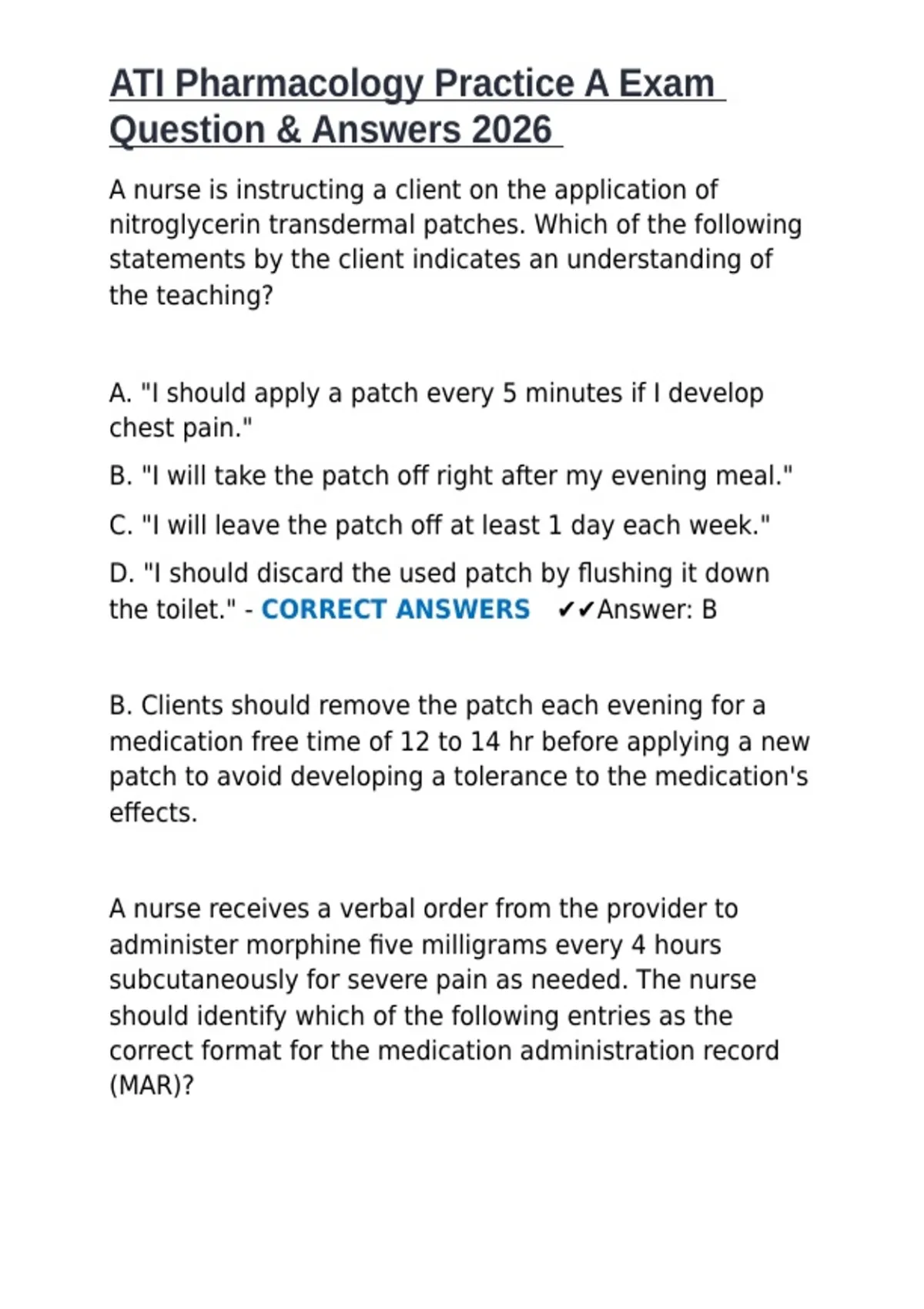 severe pain - CORRECT ANSWERS ✔✔Answer: B
