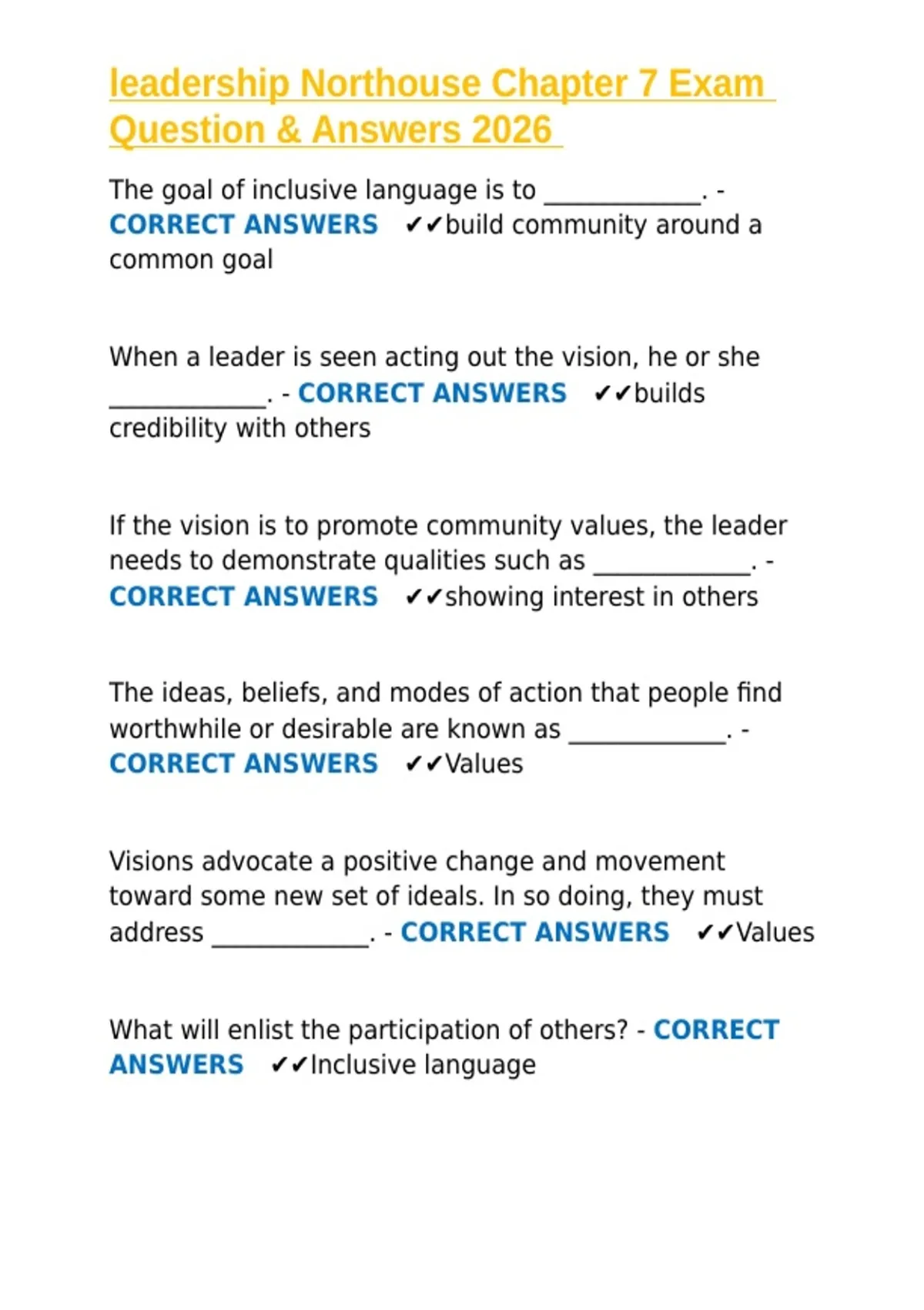 leadership Northouse Chapter 7 Exam Question & Answers 2026.docx