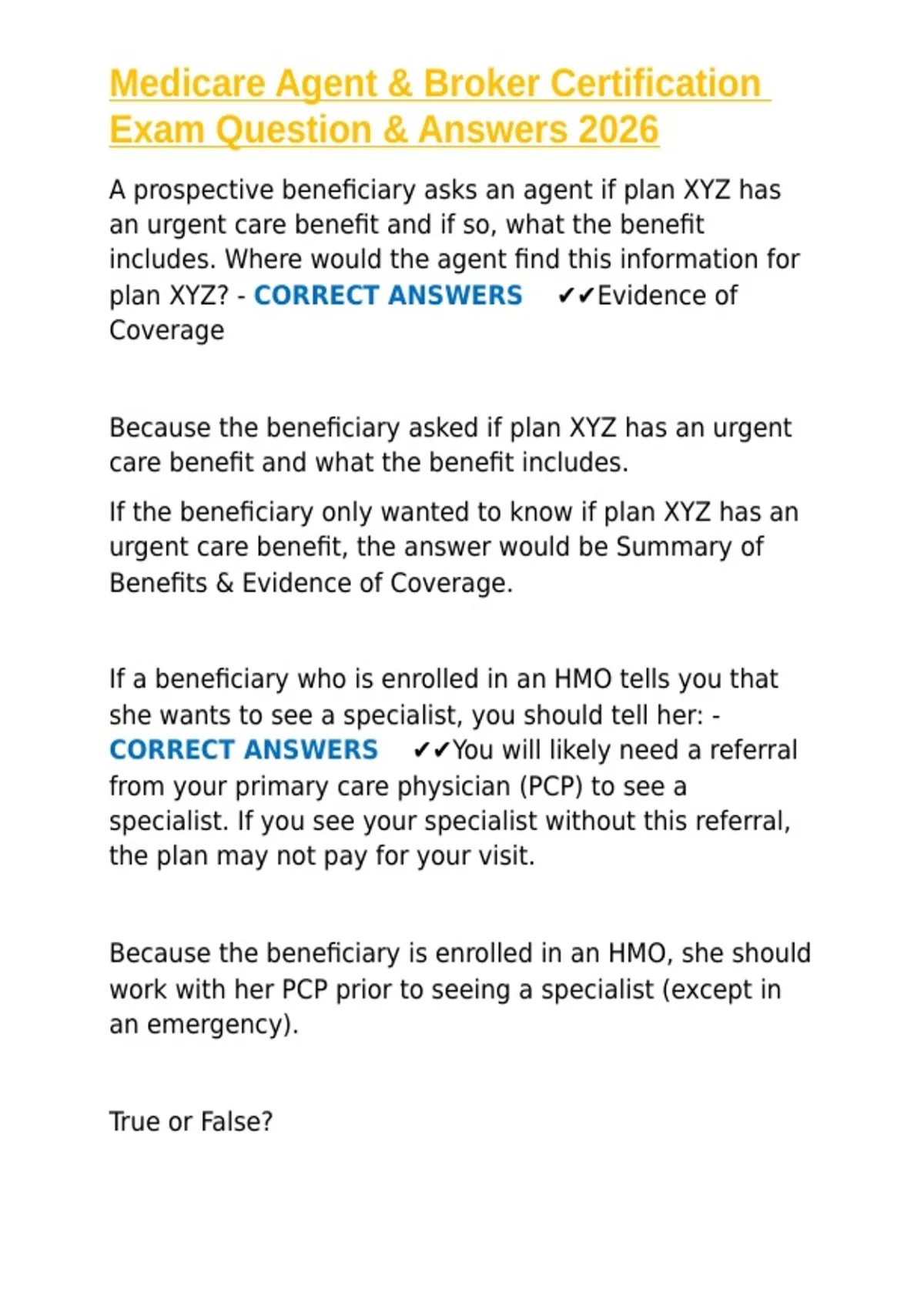 Medicare Agent & Broker Certification Exam Question & Answers