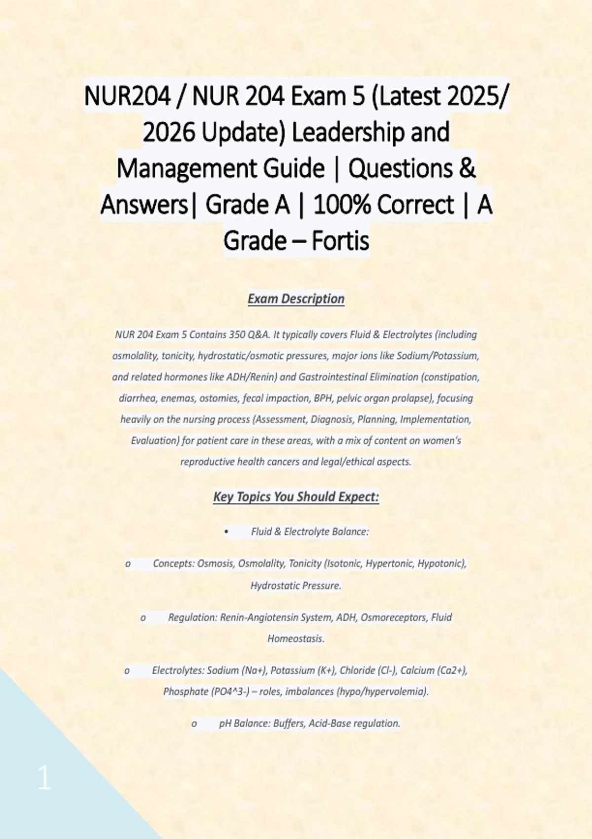 NUR 204 Exam 5 Contains 350 Q&A. It typically covers Fluid & Electrolytes (including