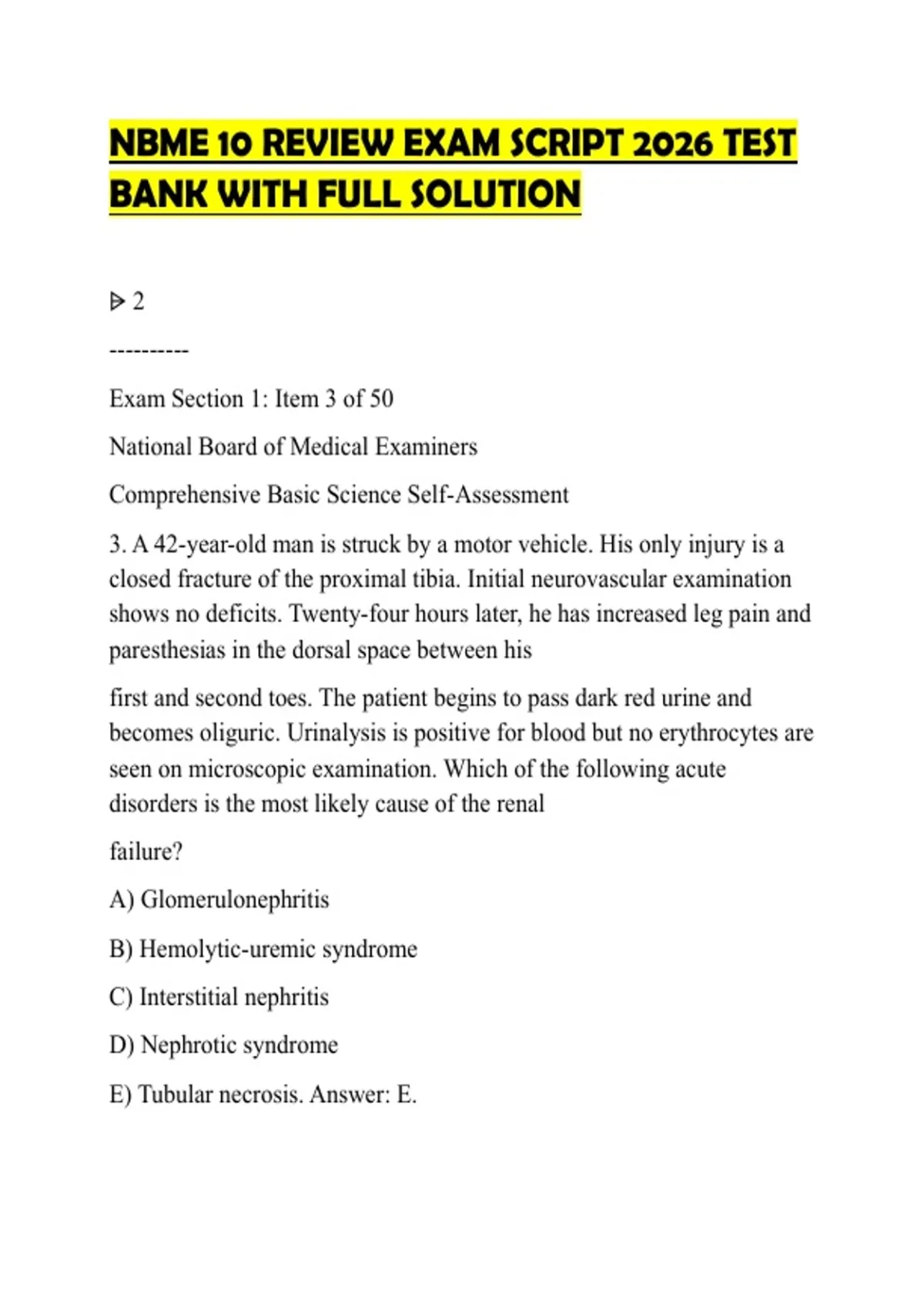 NBME 10 REVIEW EXAM SCRIPT 2026 TEST BANK WITH FULL SOLUTION