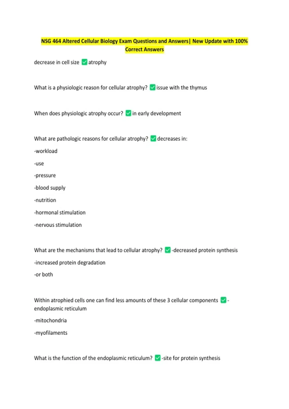 NSG 464 Altered Cellular Biology Exam Questions and Answers| New Update with 100%