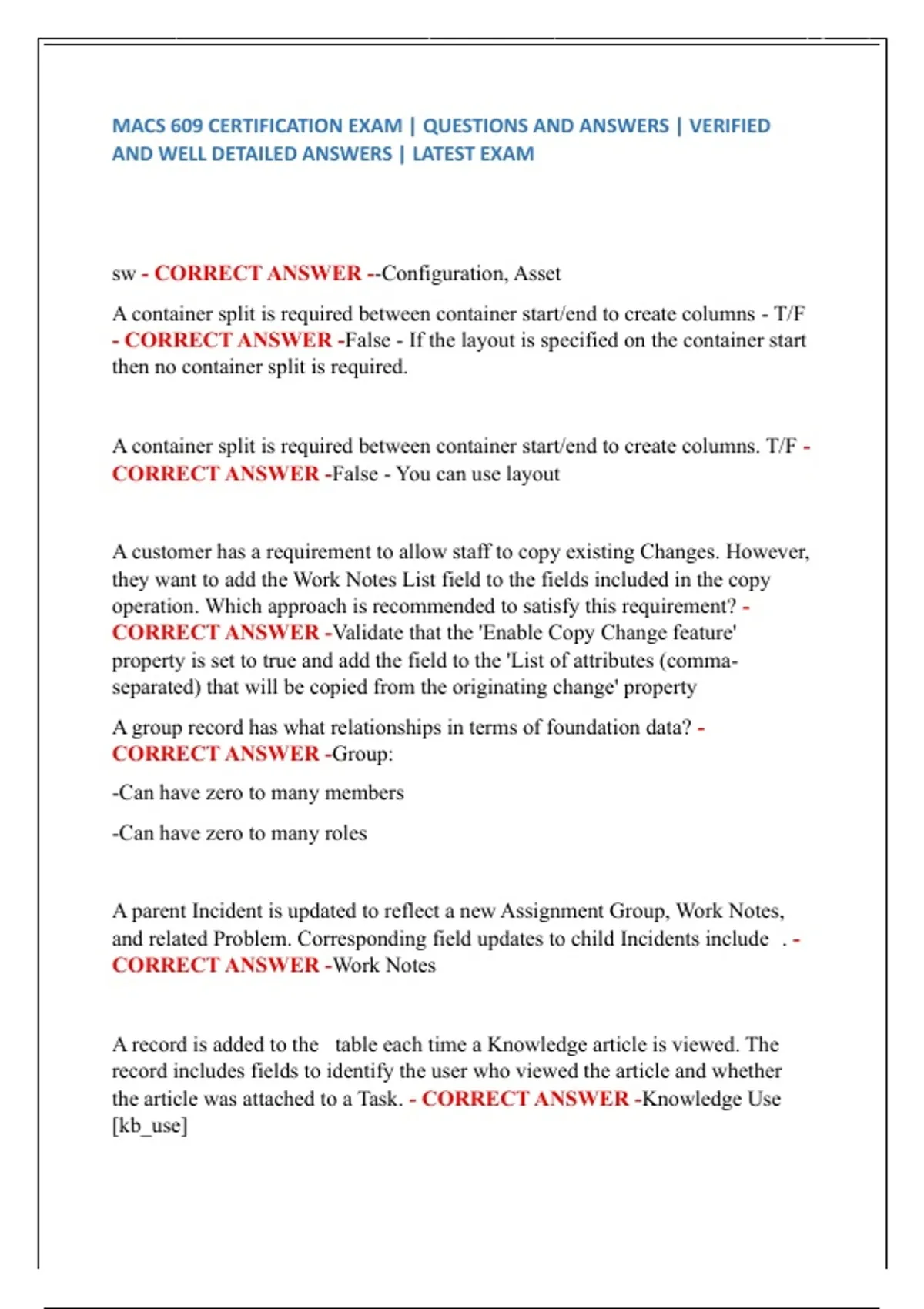MACS 609 CERTIFICATION EXAM | QUESTIONS AND ANSWERS | VERIFIED